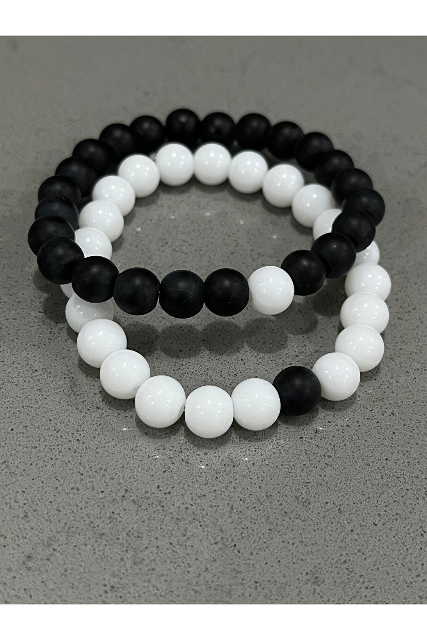 - Siyah beyaz sevgili kombini, şıklığı ve zarafeti bir arada sunar; her anınıza eşlik edecek unisex tasarımıyla hem kadınlar hem de erkekler için idealdir.; - Mat oniks taşı kullanımı sayesinde dayanıklı ve uzun ömürlü bir kullanım vaat eder; günlük kullanımda bile formunu korur.; - Bakım talimatlarına uygun olarak nemli bir bez ile silerek temiz tutabilirsiniz; böylece bileğinizdeki bu özel aksesuar her zaman yeni gibi kalır.; - Yetişkin yaş grubuna hitap eden bu bileklik, hem modern hem de klasik tarzları sevenler için mükemmel bir hediye seçeneği oluşturur.