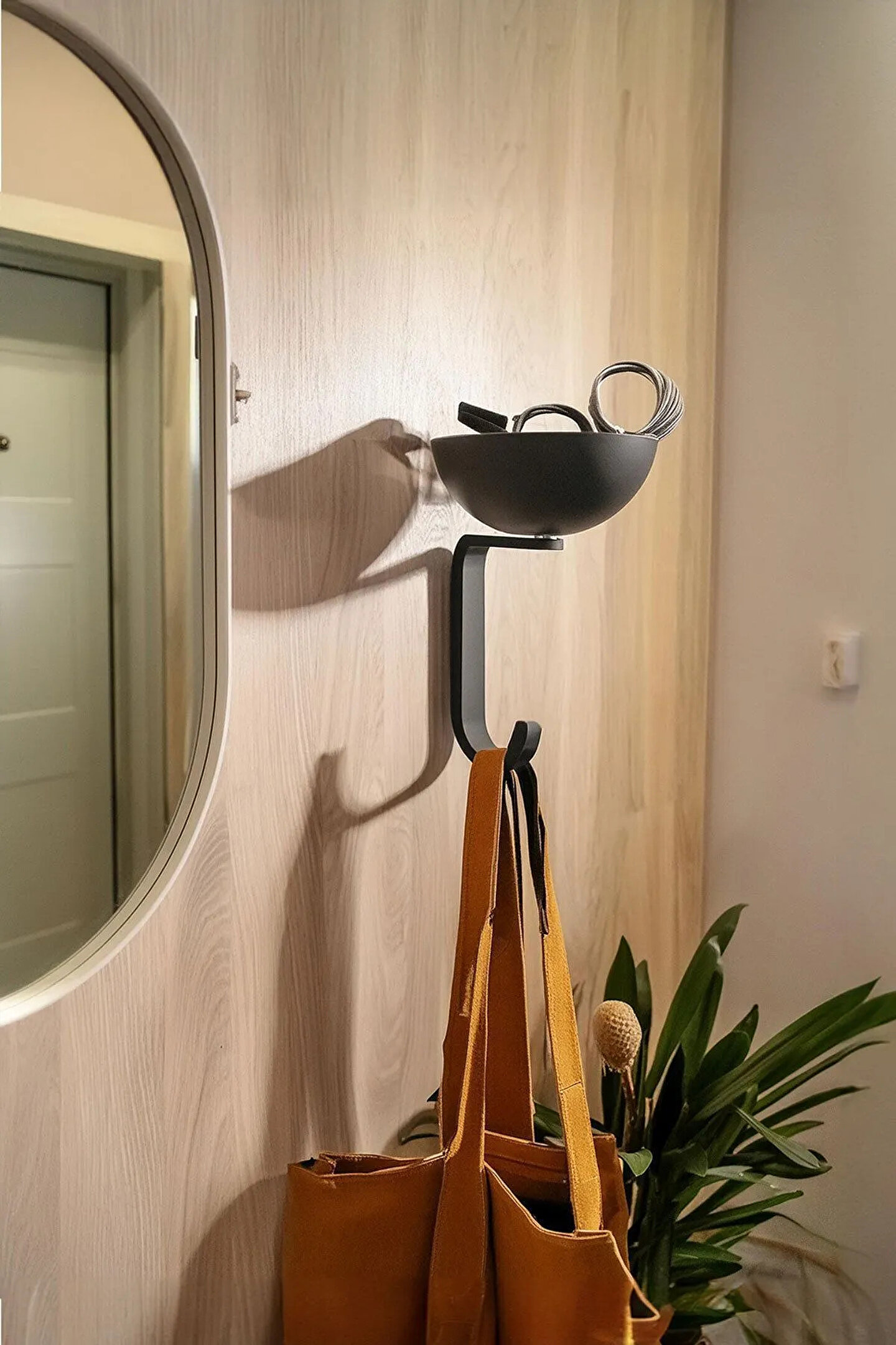 Swissole The Case Anahtarlıklı Metal Askılık Ürün Açıklaması: Evinizin düzenine modern bir dokunuş katın! The Case Anahtarlıklı Metal Askılık, şık tasarımı ve işlevselliği ile hol ve antrelerinize hem estetik hem de pratik bir çözüm sunar. Ürün Özellikleri: Yükseklik:25 cm ; Çanak Genişliği:15 cm ; Malzeme:Dayanıklı ve kaliteli metal ; Boya:Elektrostatik toz boya ile kaplanmış ve fırınlanmış, dokulu (texture) yüzey ; Renk:Siyah ; Kutu İçeriği: 1 adet The Case Metal Askılık ; 1 adet metal kase ; Montaj vidaları ; Öne Çıkan Özellikler: Şıklık ve Dayanıklılık:Yüksek kaliteli metal malzemesi ve elektrostatik toz boya kaplaması ile uzun ömürlü kullanım sağlar. ; Kullanışlı Tasarım:Anahtarlarınızı, küçük aksesuarlarınızı ve günlük eşyalarınızı düzenli bir şekilde saklayabileceğiniz kase bölmesi ile fonksiyonelliği artırır. ; Kolay Montaj:Duvara monte edilebilir yapısıyla yerden tasarruf sağlar ve kurulum kolaylığı sunar. ; Çok Amaçlı Kullanım:Hol, antre ve giriş alanlarında şık bir dekoratif unsur ve işlevsel bir askı olarak kullanıma uygundur. ; The Case Anahtarlıklı Metal Askılıkile evinizin girişini hem düzenleyin hem de modern ve zarif bir dokunuş katın. Şimdi sipariş verin, evinizde fark yaratın!