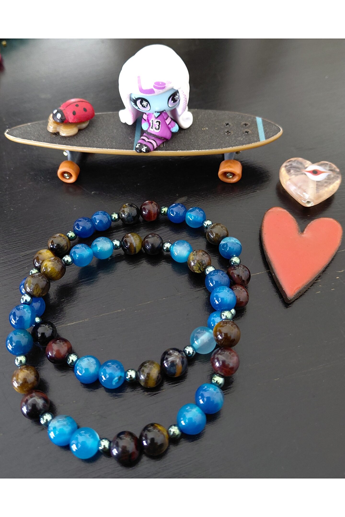 - Doğal taş Lapis ve kaplangözü bileşenleriyle tasarlanmış, hem şıklığı hem de doğallığı bir arada sunar.; - Nemli bir bez kullanarak kolayca temizlenebilir yapısıyla pratik kullanım sağlar.; - Kadın ve kız çocuklarına özel olarak tasarlanmıştır, gençlerin enerjisine hitap eder.; - Üretim yeri Türkiye'de gerçekleştirilmiştir.; - Doğal taş materyali sayesinde her parçaya benzersiz bir karakter kazandırırken dayanıklılığı arttırır.;
