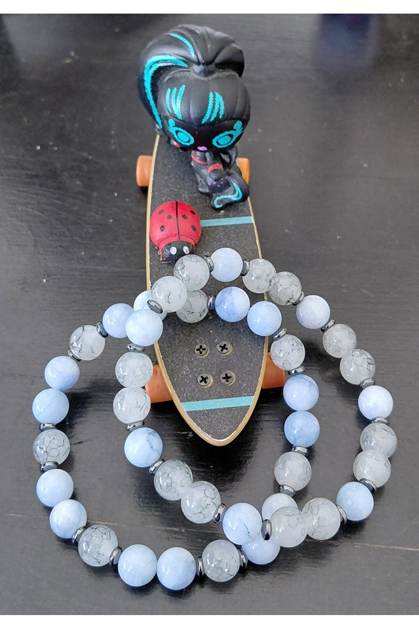 - Doğal taş mavi akik bileşenleriyle tasarlanmış, hem şıklığı hem de doğallığı bir arada sunar.; - Nemli bir bez kullanarak kolayca temizlenebilir yapısıyla pratik kullanım sağlar.; - Kadın ve kız çocuklarına özel olarak tasarlanmıştır, gençlerin enerjisine hitap eder.; - Üretim yeri Türkiye'de gerçekleştirilmiştir.; - Doğal taş materyali sayesinde her parçaya benzersiz bir karakter kazandırırken dayanıklılığı arttırır.;
