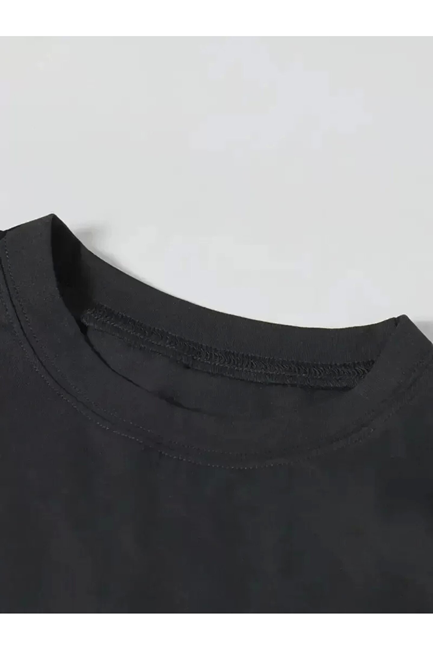 Tam12den Home Ördek Baskılı ve Yuvarlak Yakalı Kadın Günlük Büyük Boy Siyah Tişört. - Siyah
