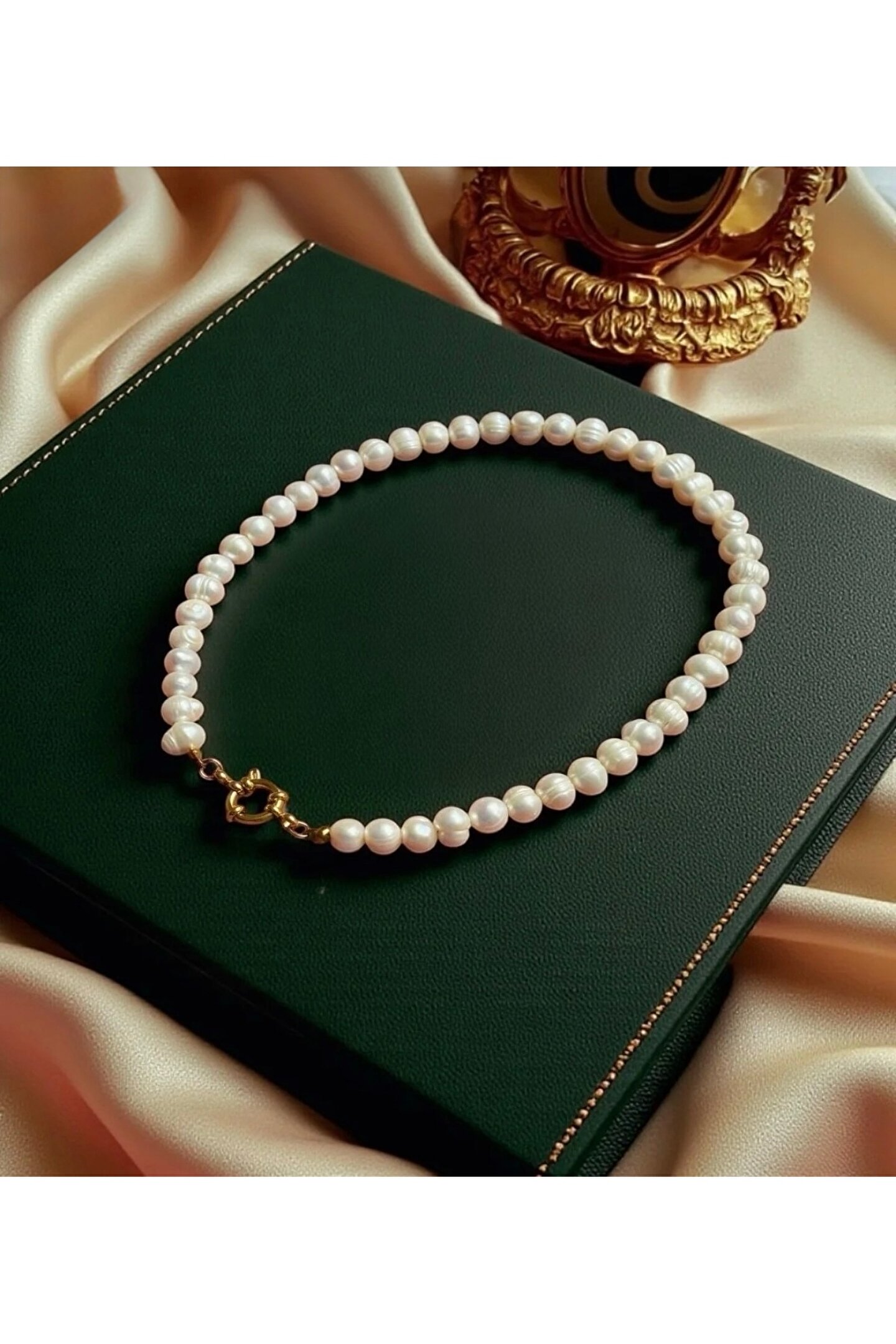 Taş-Mir 50 Cm Sertifikalı Gerçek Doğal 8 mm İnci Kolye - Gemici Kilit