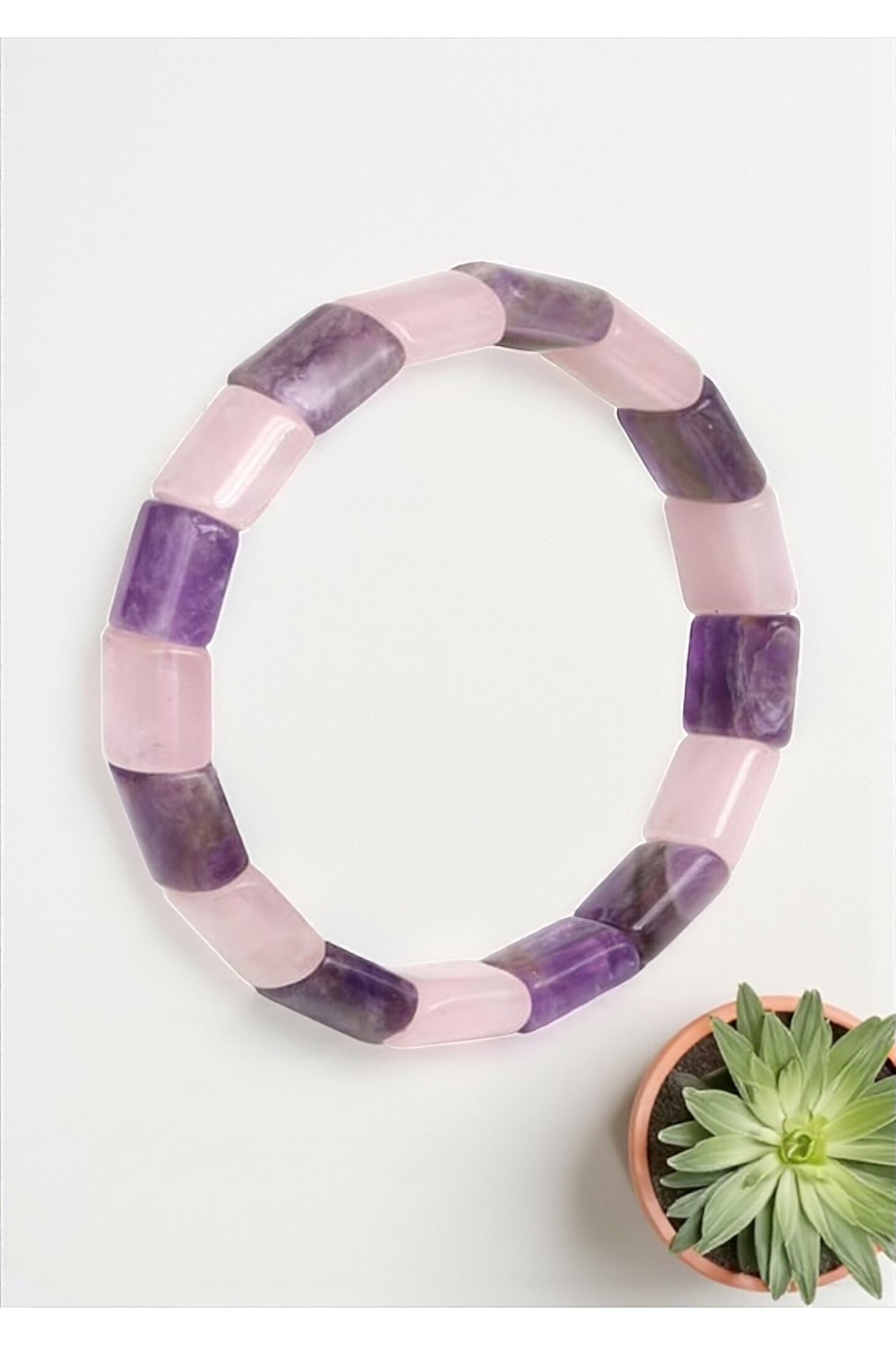 Tane Boyu 12 x 15 mm.; ;Uzunluk 20 cm.;TÜM TAŞLARIMIZIN ORJİNALLİĞİ FİRMA GÜVENCEMİZ ALTINDADIR!;AMETİST - AMETHYST (Pozitif Enerji Taşı)Ametist taşı, sahip olduğu enerji sayesinde bulunduğunuz ortamın negatif enerjisini kısa sürede yok ettiği düşünülen bir taştır.; Bu sebeple meditasyon taşları içinde en çok tercih edilen doğal taşlardan biri olmuştur.; Antik çağlardan bu yana zararlı alışkanlıklardan arınmak için yardımcı taş olarak kullanıla gelmiştir.; Uyumlu Burçlar ; Balık, Koç, Yengeç, Akrep ve YayUyumlu Çakralar ; 6.Alın Çakrası (Üçüncü Göz) ve 7.Taç ÇakrasıPEMBE KUVARS - PINK QUARTZ (Sevgi Taşı)Pembe Kuvars taşı, kalbinizi hastalık ve travmalara karşı korur.; Mutluluk duygusu verir.; Ametist ile uyumlu kullanıldığı zaman enerjinizi arttırır ve aşk duygunuzu güçlendirir.; Uyumlu Burçlar ; Koç, Boğa, İkizler, Yengeç ve BaşakUyumlu Çakralar ; 5.Boğaz Çakrası ve 4. Kalp ÇakrasıDoğal Taş Nasıl Arındırılır?Tütsüleme: Tütsü kullanarak yapılan enerjetik temizlik, taşın üzerindeki negatif enerjiyi dağıtmak için etkilidir.; Bir elinize taşı bir elinize tütsüyü alıp dumanıyla 15-20 saniye boyunca taşınızı temizleyebilirsiniz.; Akan Su Altında Temizleme: Doğal taşların akan su altında tutulması, üzerlerindeki enerjik kirliliği giderir.; Akar suyun altında 2-3 dakika yıkayarak taşınızı temizleyebilirsiniz.; Toprağa Gömme: Doğal taşlar, doğanın enerjisini emmek için toprağa gömülebilir.; Bu yöntem, taşın enerjisinin dengelenmesine yardımcı olur.; Taşınızı 1 gün toprağa gömerek temizleyebilirsiniz