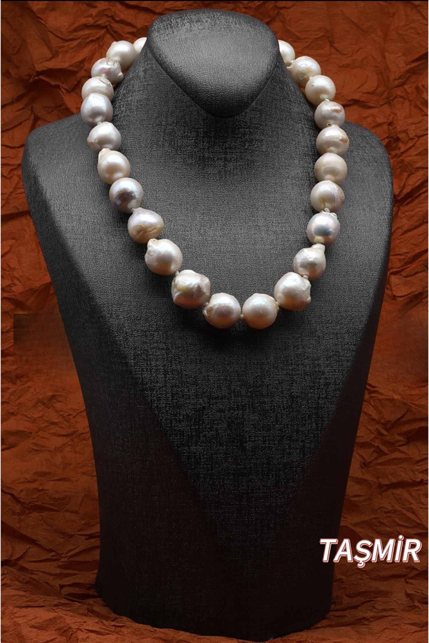 Değerli müşterilerimiz, Son zamanlarda bazı satıcıların daha düşük fiyatla yan sanayi ürünleri aynı ürün adıyla gönderdiğini fark ettik.; Sizlere her zaman en yüksek kaliteyi sunabilmek için, yalnızca kendi resmi mağazamızdan alışveriş yapmanızı tavsiye ederiz.; Orijinal ürünlerimizi güvenle satın almak için lütfen mağaza adımızı kontrol etmeyi unutmayın.; Saygılarımızla, Taşmir; Bu Üründe Kullanılan Doğal Taş: Barok İnci; Bu Üründe Kullanılan Doğal Taş Boyutu: 14 mm.; x 16 mm ( ortalama ); Ürünün Ortalama Uzunluğu: 40 + 3 cm uzatma zinciri; Not: Ürünler doğal inci olduğu için şekiller çok küçük farklılıklar gösterebilir.