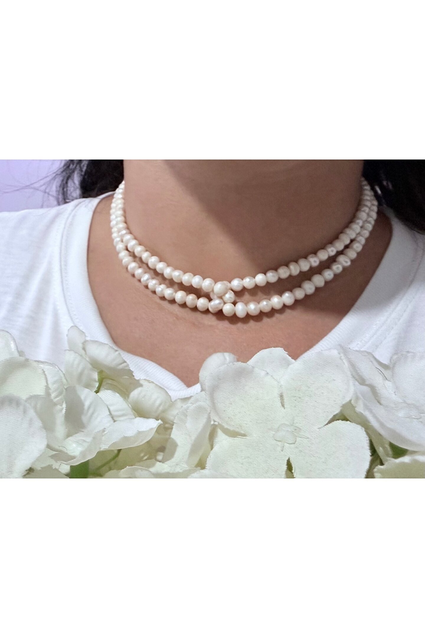 Taş-Mir Gerçek Doğal Çift Katlı İnci Kolye ( A Kalite )