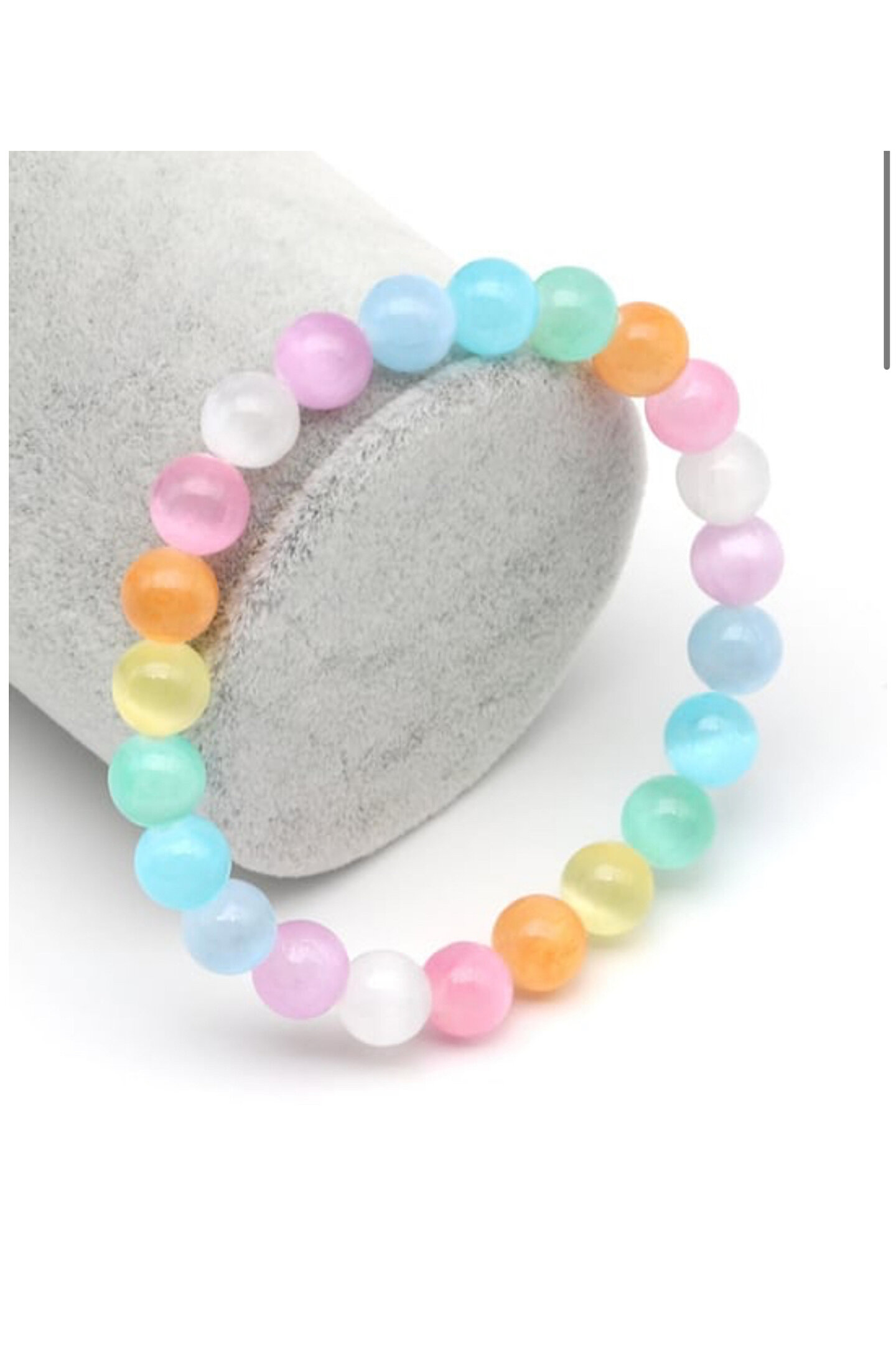 Bu Üründe Kullanılan Doğal Taş:Renkli Selenit;Bu Üründe Kullanılan Doğal Taş Boyutu:;Ortalama Çap : 8 mm;Ortalama Uzunluk : 19 cm ( Tek Sıra ); Elastik yapıda olduğu için yetişkin kadın ve erkekler için uygundur.;