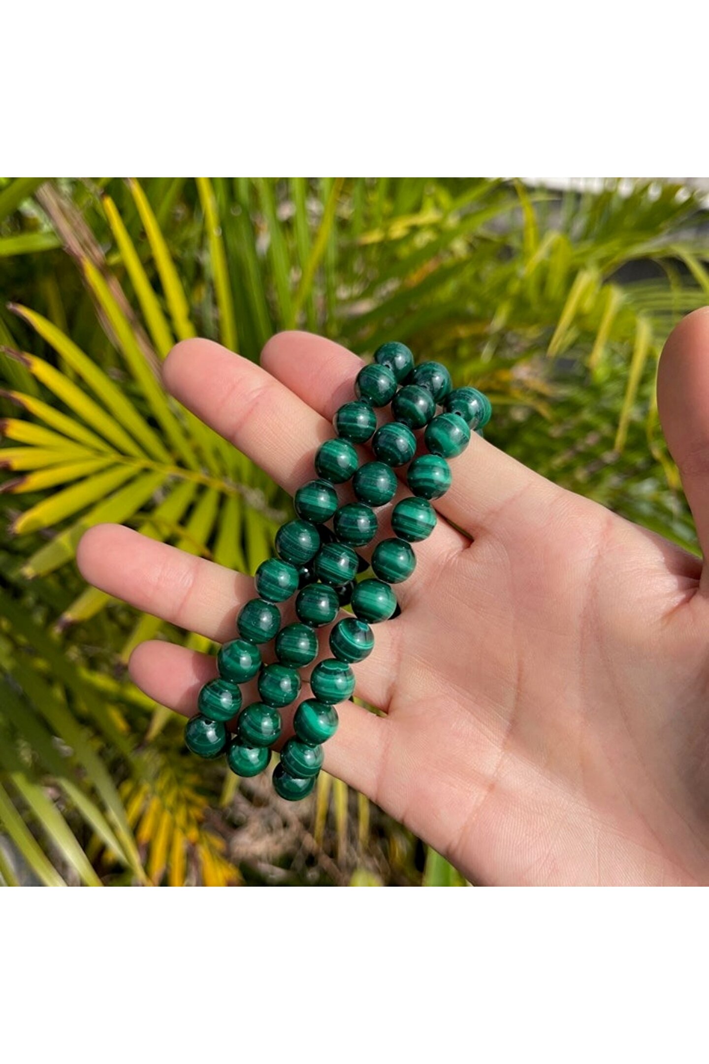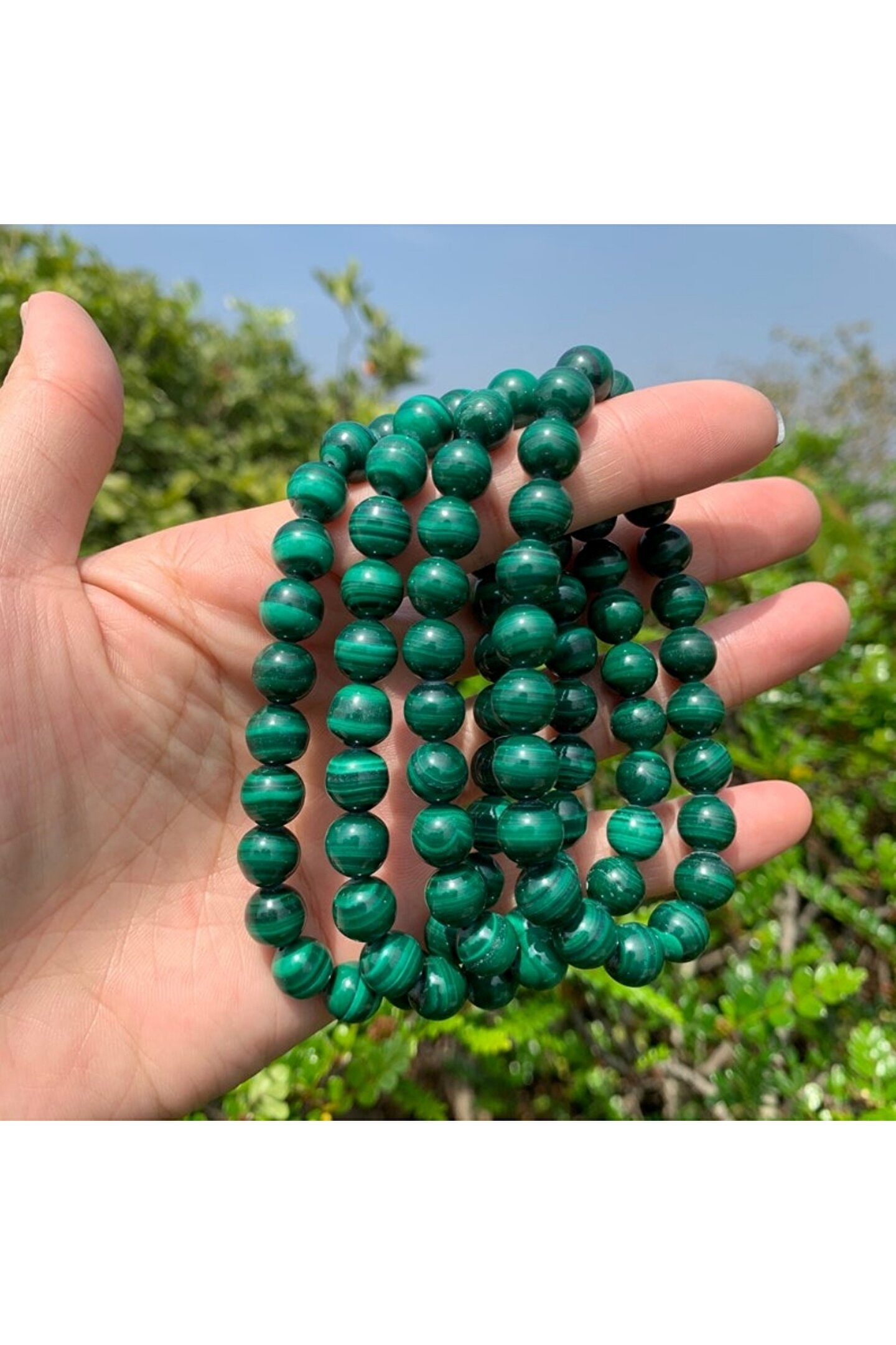 Doğal Malahit taşı kullanılarak üretilmiş, her bir bileklik benzersiz ve otantik bir görünüm sunar; Malahit taşı, bileklikte kullanılan ana malzeme olarak seçilmiştir; bu sayede hem şıklığı hem de doğallığı bir arada yaşatır; Taşın doğal yapısı ve renk tonları, her cilt tonuna uyum sağlayarak zarif bir aksesuar deneyimi sunar; Malahit taşı, bileklikte kullanılan materyalin dayanıklılığını artırarak uzun süreli kullanım imkanı sağlar;