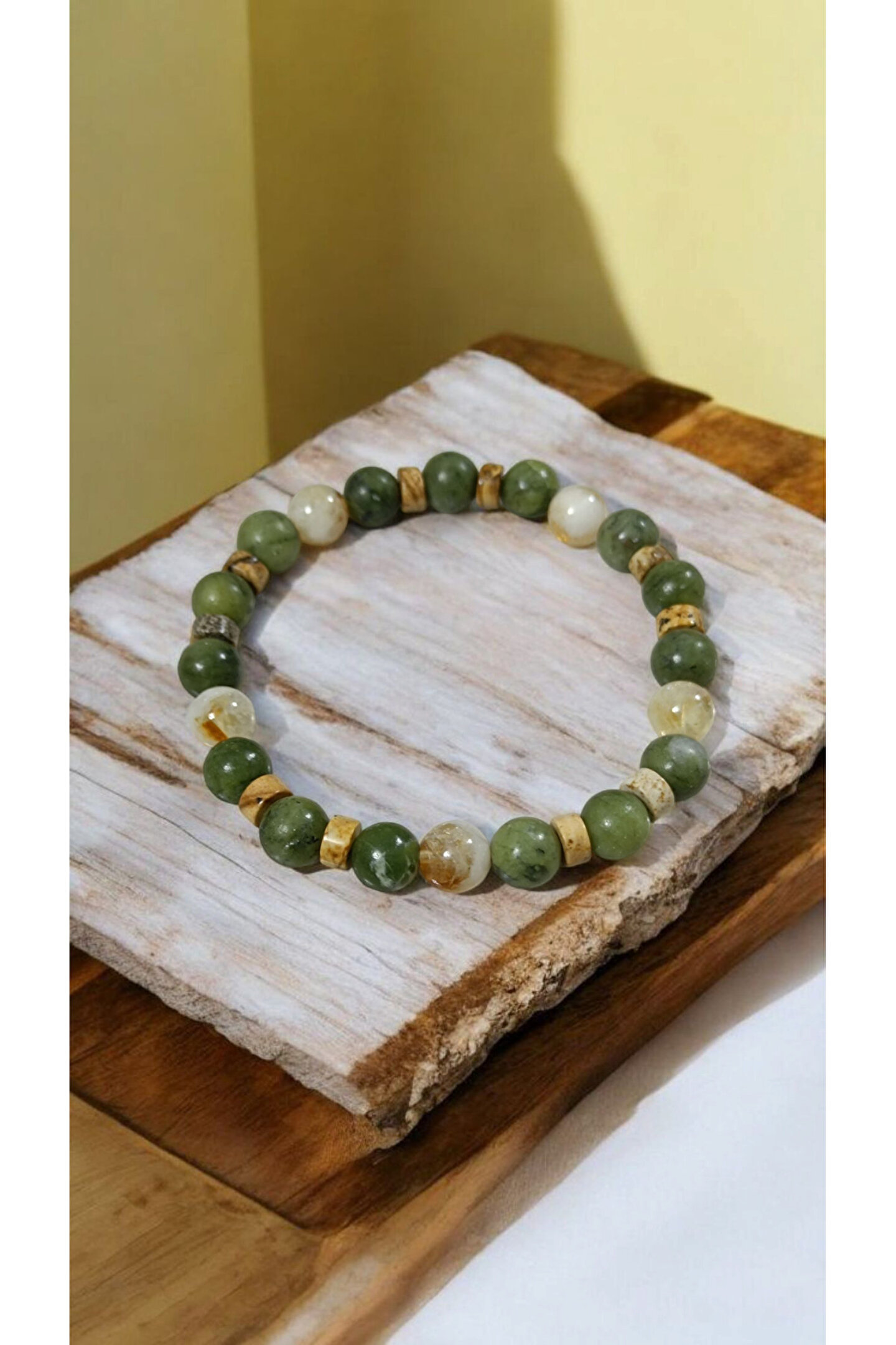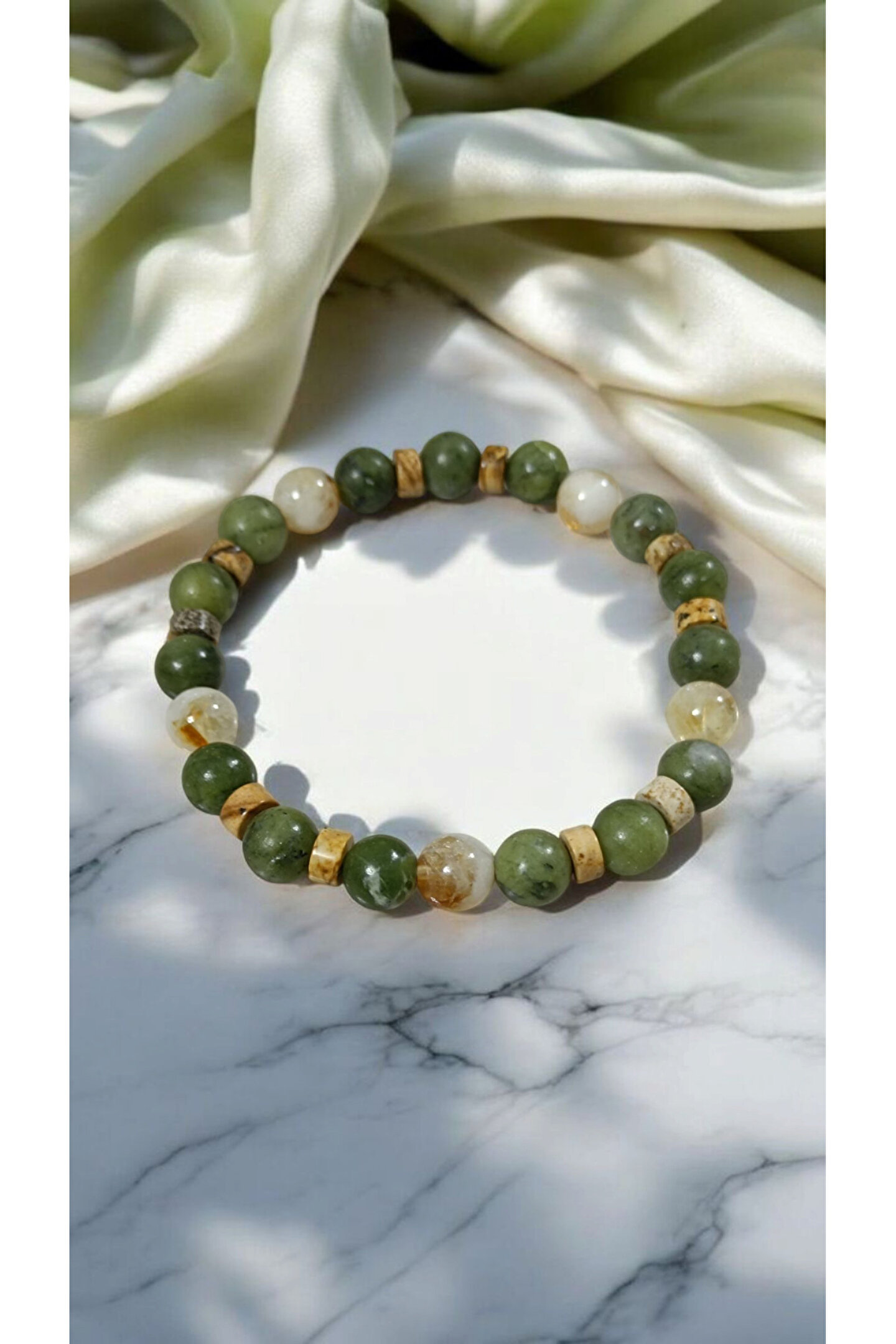 - Kanada Yeşim Taşı ve Sitrin bilekliği, hem şıklığı hem de enerjik özellikleriyle dikkat çeker.; - Unisex tasarımı sayesinde herkes tarafından rahatlıkla kullanılabilir; cinsiyet ayrımı gözetmez.; - Doğal taş kullanımıyla benzersiz bir dokunuş sunar ve her bileklik benzersizdir.; - Yetişkinlerin tercihi olan bu bileklik, günlük kullanım için idealdir ve stil sahibi görünümünüzü tamamlar.; -%100 doğal taşlarla tasarlanmıştır -Kanada yeşim taşı , şans para ve manevi değerlerle ilişkilidir -Sitrin , cesaret ve güç duygusunu artırarak ruhsal sağlığı destekler , pozitif düşünceleri teşvik ettiği ve bolluk enerjisini çektiği kabul edilir