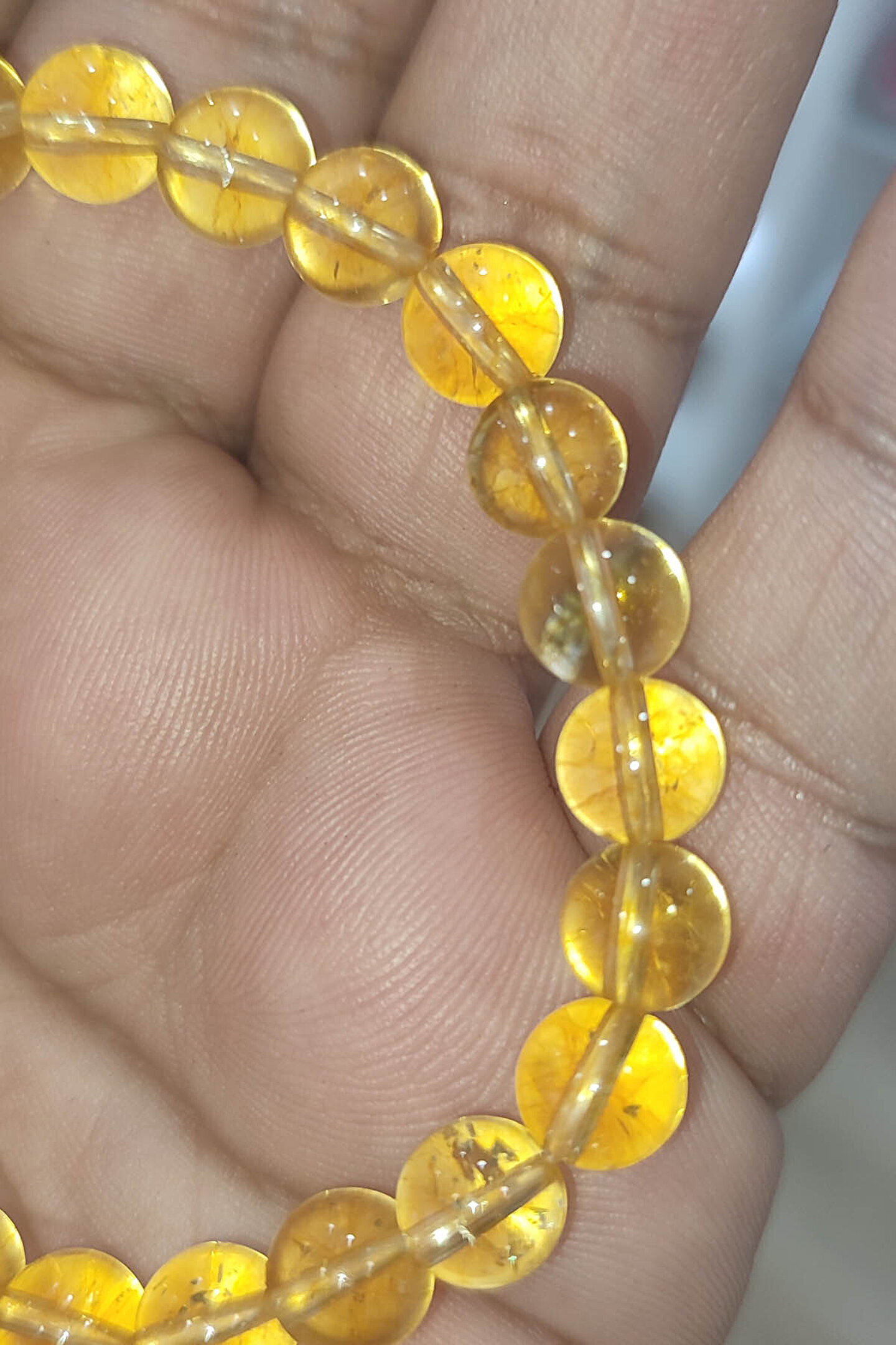 Doğal Sitrin taşı kullanılarak üretilmiş, şıklığı ve zarafeti bileğinizde hissedin; 8 mm boyutundaki bu bileklik, klasik ve modern tarzları bir arada sunar; Doğal taşların eşsiz dokusuyla her kıyafetle uyum sağlar ve benzersiz bir aksesuar deneyimi yaşatır; Sitrin taşı, enerjiyi dengelemeye yardımcı olurken aynı zamanda pozitif enerjiyi yayar;