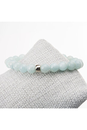 Doğal Akuamarin taşı kullanılarak üretilmiş, şıklığı ve zarafeti bir arada sunan bileklik; 8mm boyutundaki taşlar, bileklikte hem estetik bir görünüm sağlar hem de rahat bir kullanım sunar; Akuamarin taşı, mavi renk tonuyla dikkat çeker ve her türlü kıyafetle kolayca uyum sağlar; Doğal taş materyali sayesinde her bileklik benzersizdir ve her kullanımda farklı bir deneyim sunar;