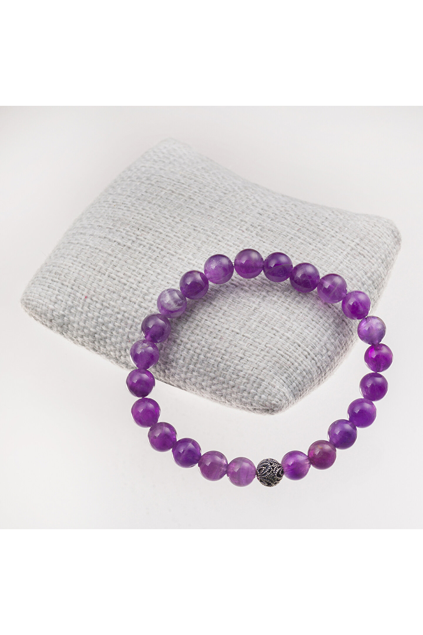 Doğal ametist taşı, gümüş bileklikte zarif bir şekilde kullanılarak şıklığınızı tamamlar; Gümüş materyal, hem dayanıklılığı hem de estetik görünümü ile dikkat çeker; 8 mm boyutundaki bu bileklik, klasik ve modern tarzı bir arada sunar;