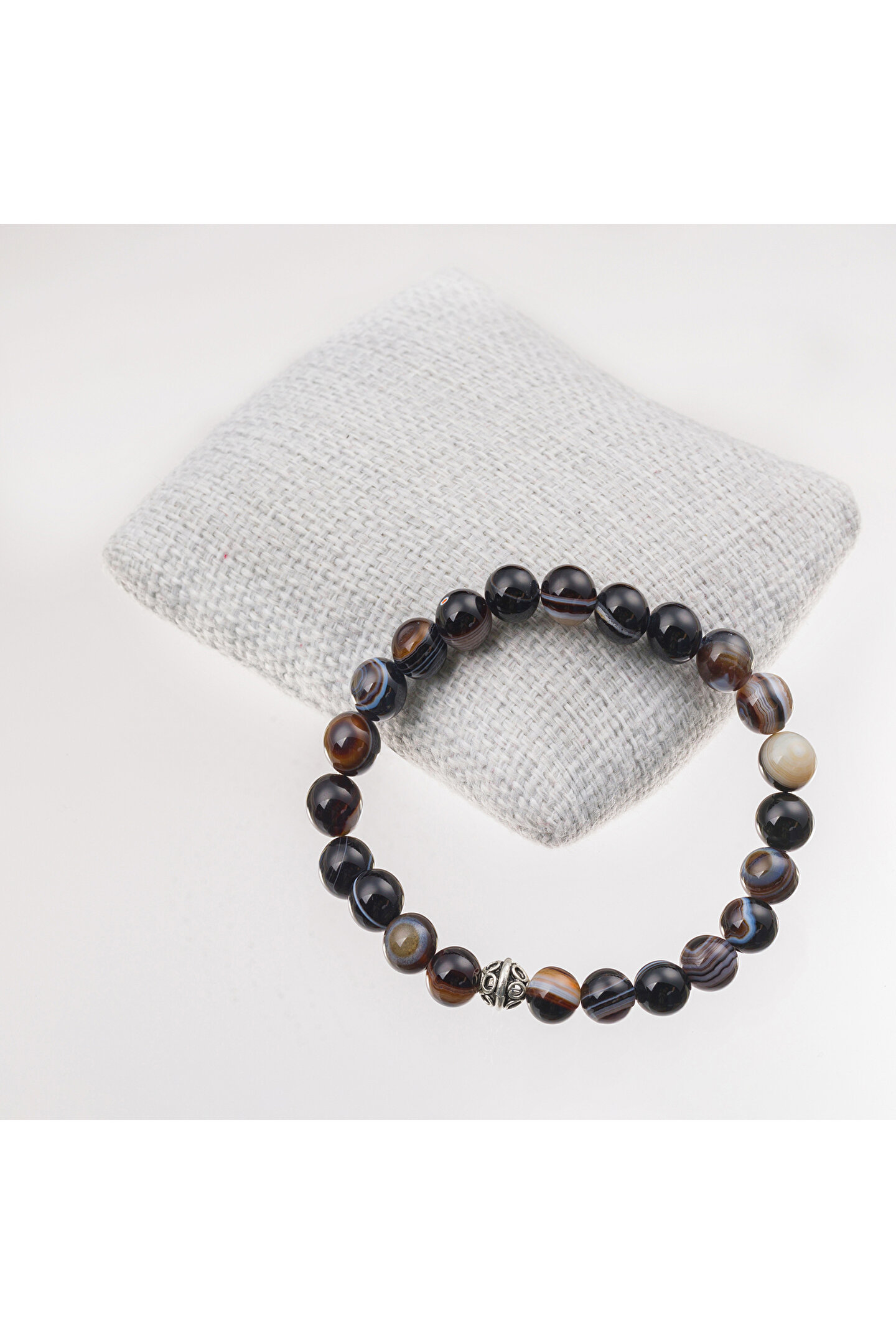 Taşta Moda Göz Akik Taşı Gümüş Bileklik-8 mm