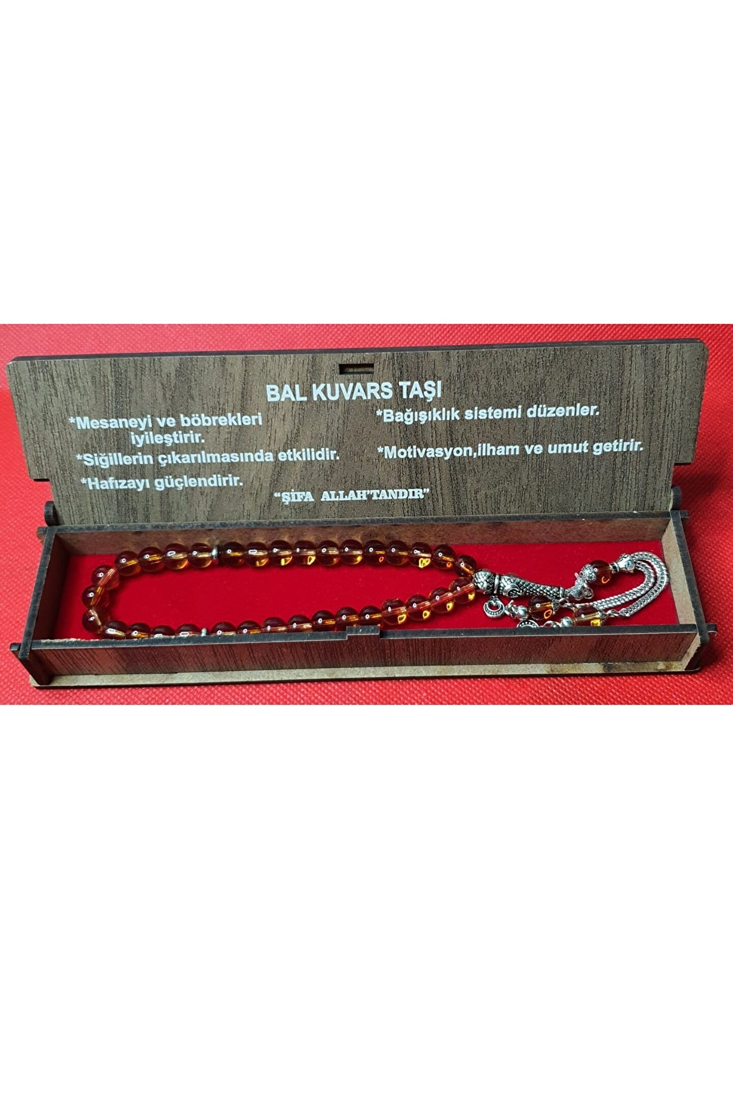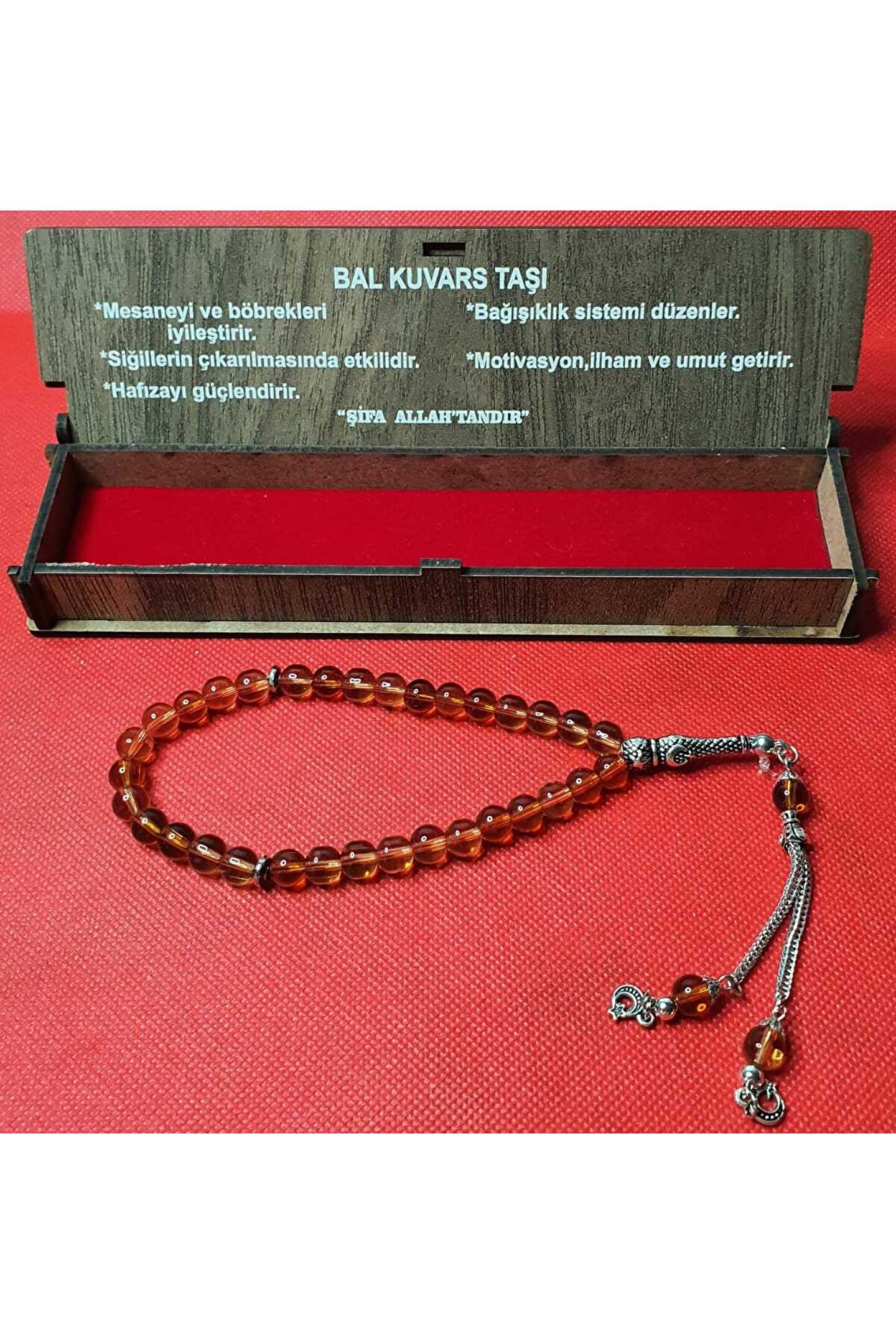 Doğal taş malzemesiyle üretilmiş, her bir tespih tanesi el yapımı ve benzersiz bir dokunuşla tasarlanmıştır; Bal kuvars taşı kullanımı sayesinde, tespihinizi her kullanımda şık ve doğal bir görünüm kazandırır; 33'lük özel tasarımıyla, hem kişisel kullanım için ideal hem de hediye olarak tercih edilebilecek zarif bir seçenektir; Kutulu ambalajı ile sunulan bu tesbih, sevdiklerinize anlamlı ve estetik bir hediye alternatifi sunar;