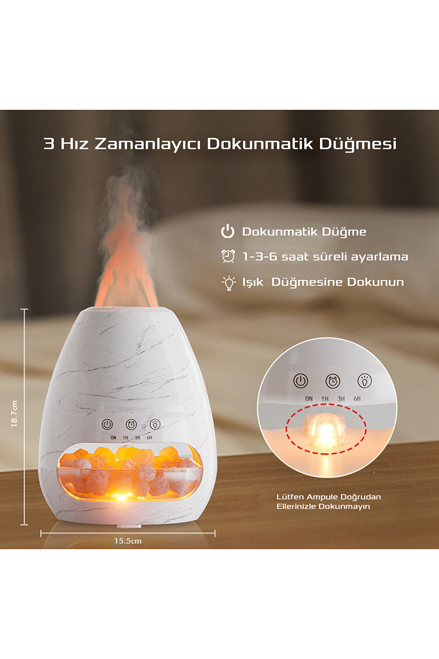 2 yıl garanti süresi ile güvenle kullanım sunar, uzun ömürlü ve dayanıklı bir deneyim sağlar; Himalaya tuz lambası, ultrasonik teknolojisi sayesinde oda havasına doğal bir aroma yayarak huzurlu bir atmosfer yaratır; 3D alev efekti ile görsel bir şölen sunarken, aromaterapi deneyiminizi zenginleştirir; Oda hava nemlendirici özelliği ile nem seviyesini dengeler ve cildinizin daha sağlıklı olmasına katkıda bulunur;