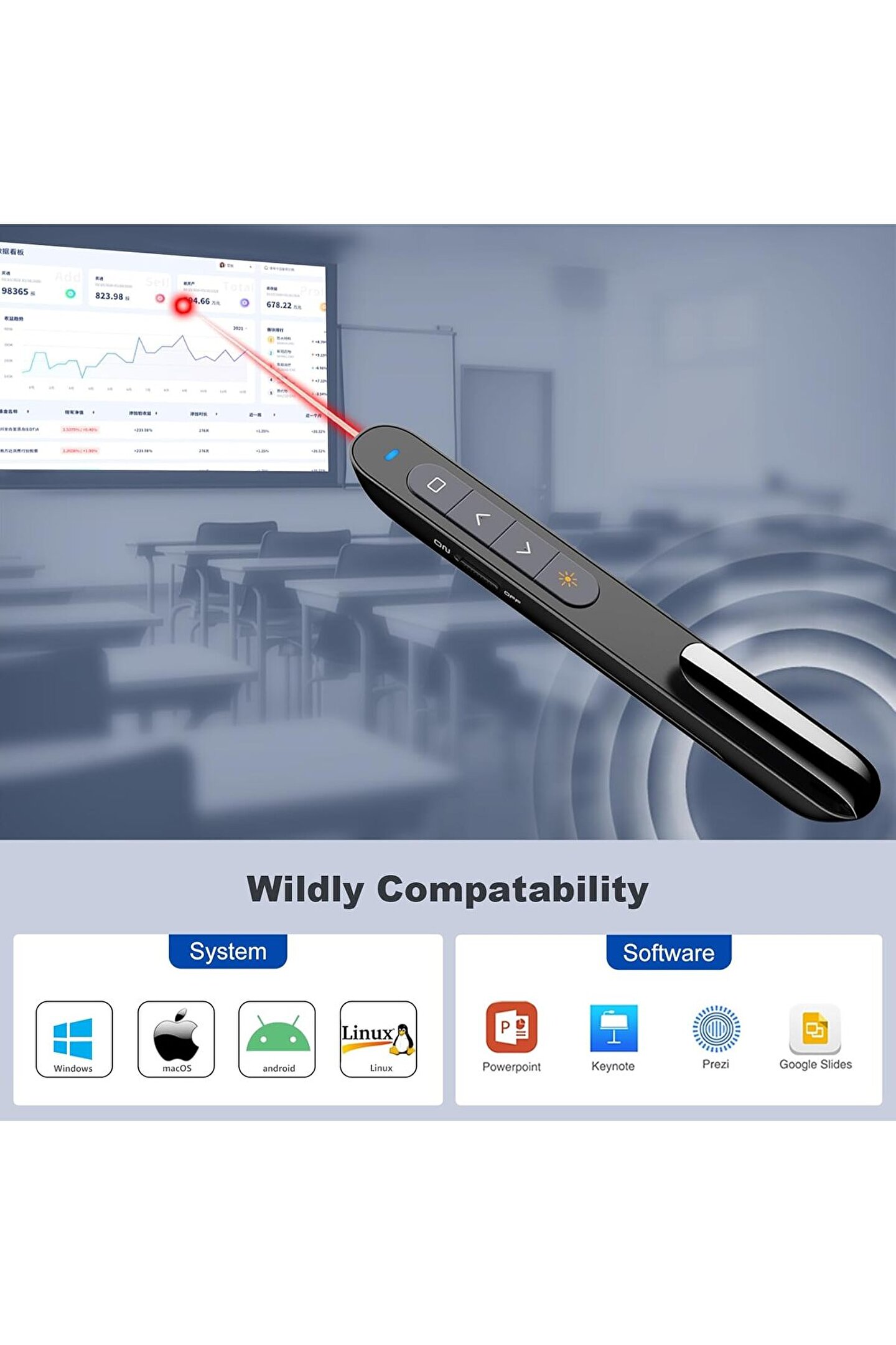 Kırmızı Lazer İşaretçi - ① Bu Sunum Tıklayıcısı IEC-60825-1 güvenlik lazer standardına kesinlikle uygundur; ② Kırmızı lazer işaretçisi çoğu arka plana karşı açıkça görülebilir. LED LCD TV ekranları için tavsiye edilmez