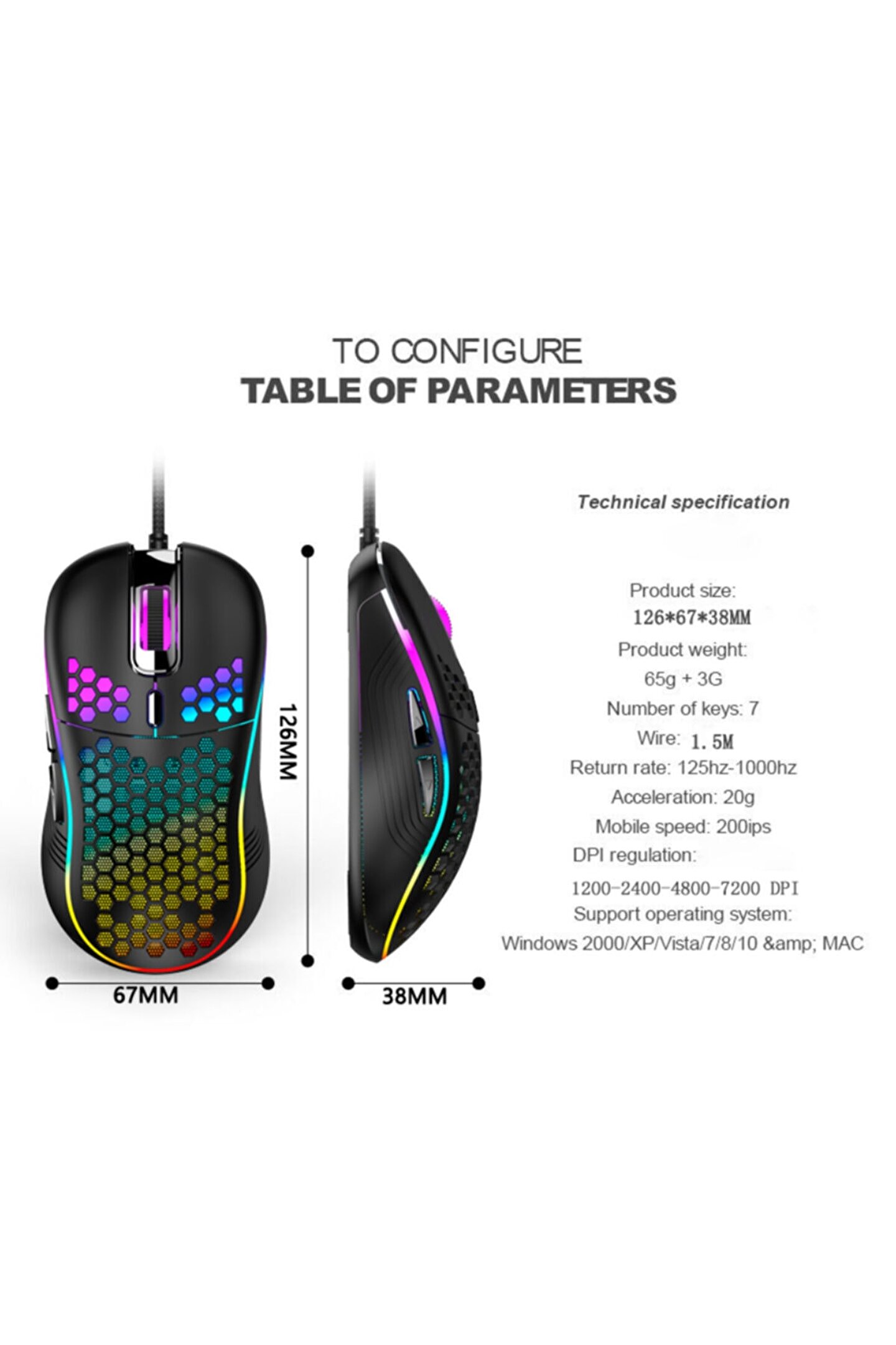 JUNGLEE Rgb Led Işıklı Oyuncu Mouse Gaming 800-2400 Dpi 0 Oyun Mouse Mat Siyah
