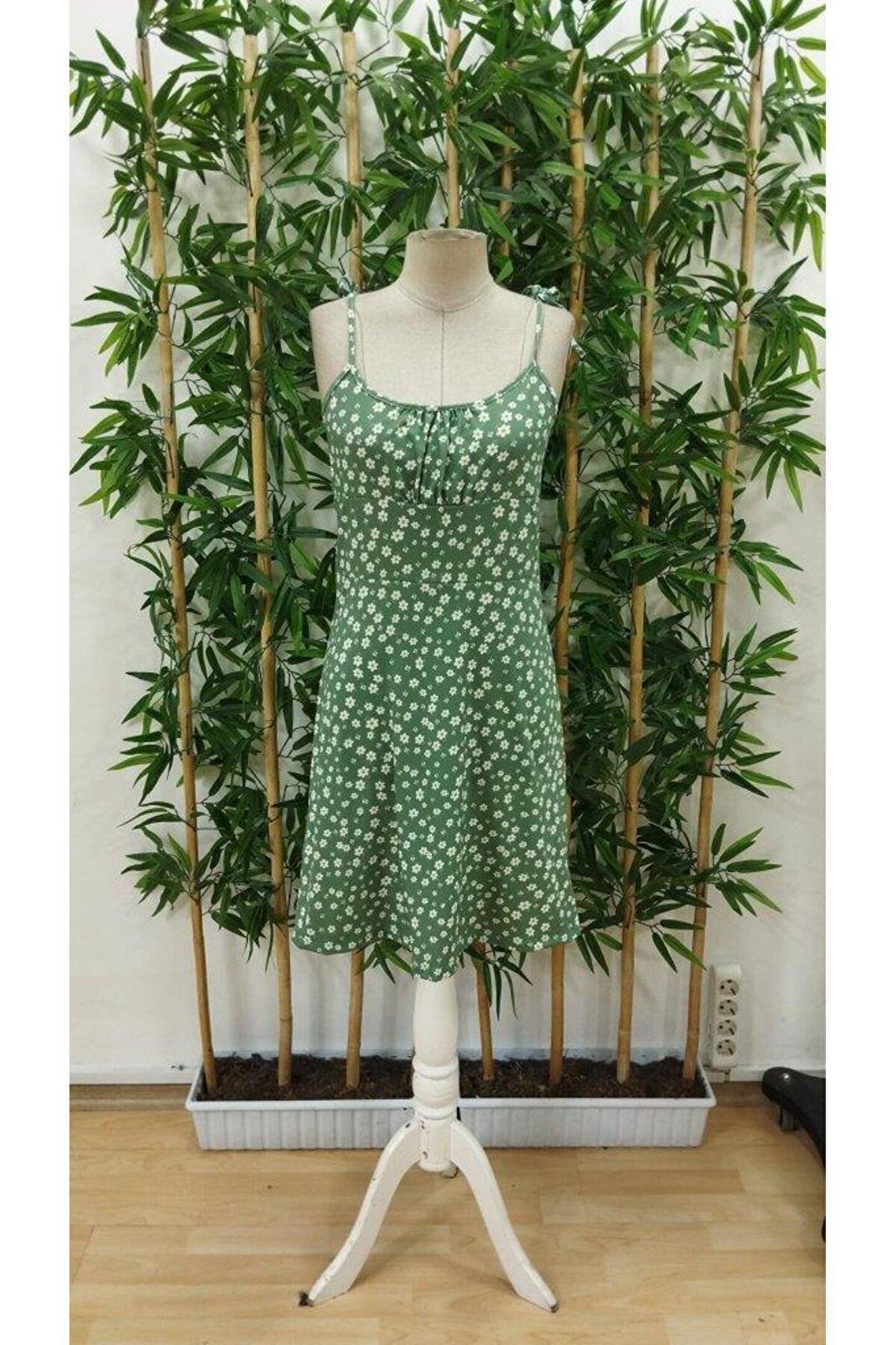 Kadın Ip Askılı Omuzlardan Bağcıklı çiçek Desenli Süprem Elbise