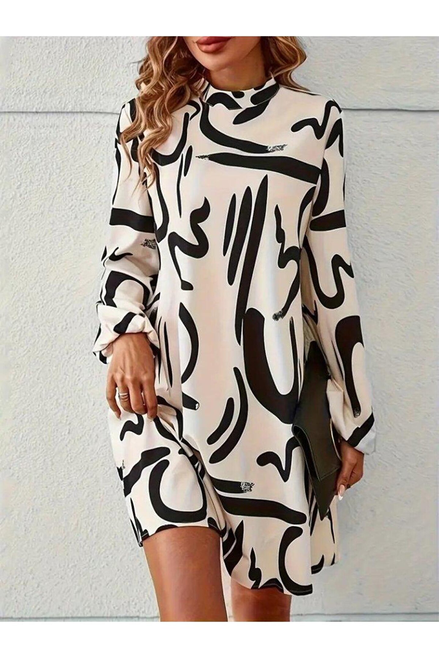 TBL DEKOR Kadın Uzun Kollu Balıkçı Yaka Desenli şardonlu Dalgıç Elbise