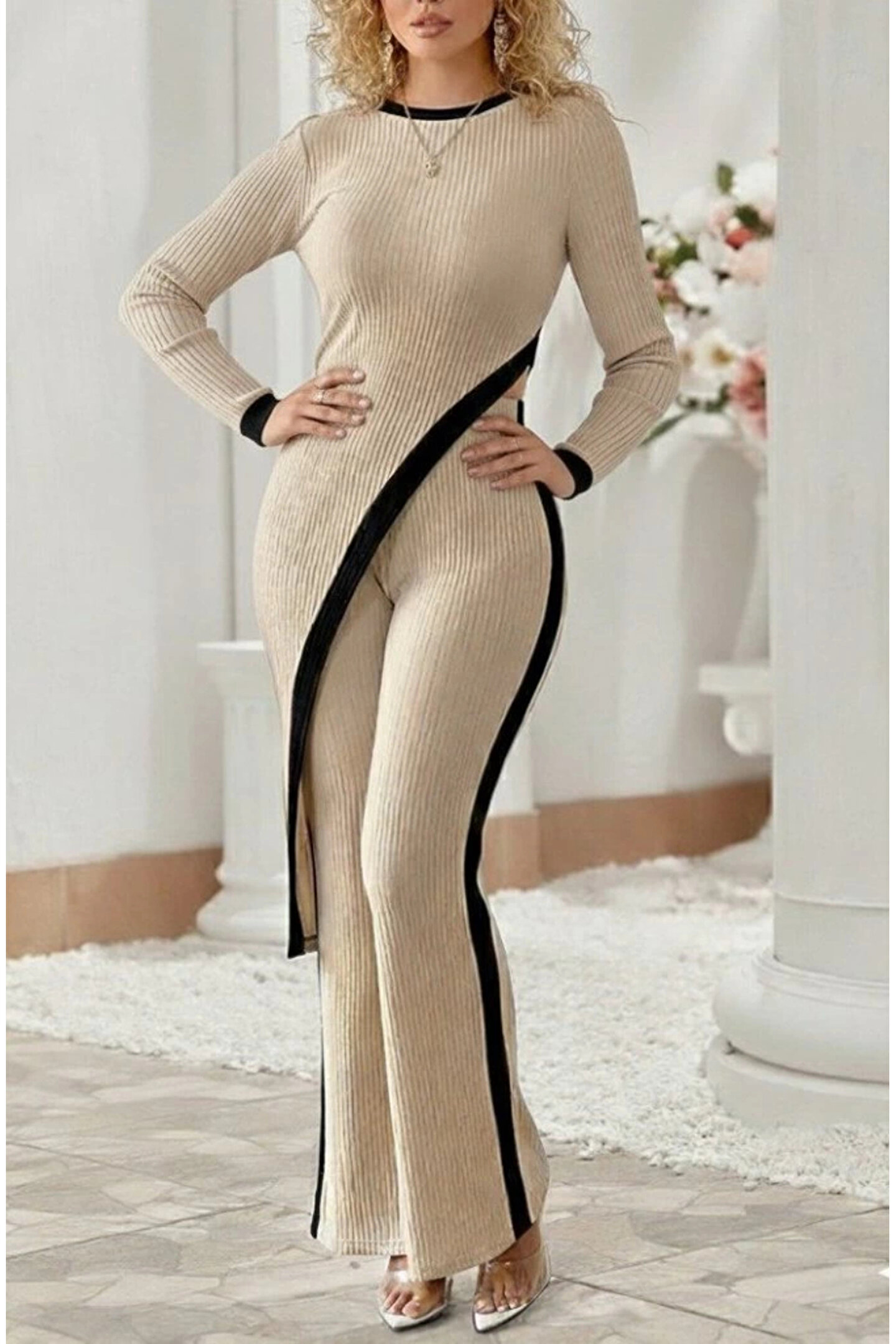 TBL DEKOR Kadın Uzun Kollu Bisiklet Yaka Asimetrik Kesim Bluz şardonlu Kaşkorse Bluz Ve Pantolon Ikili Takım