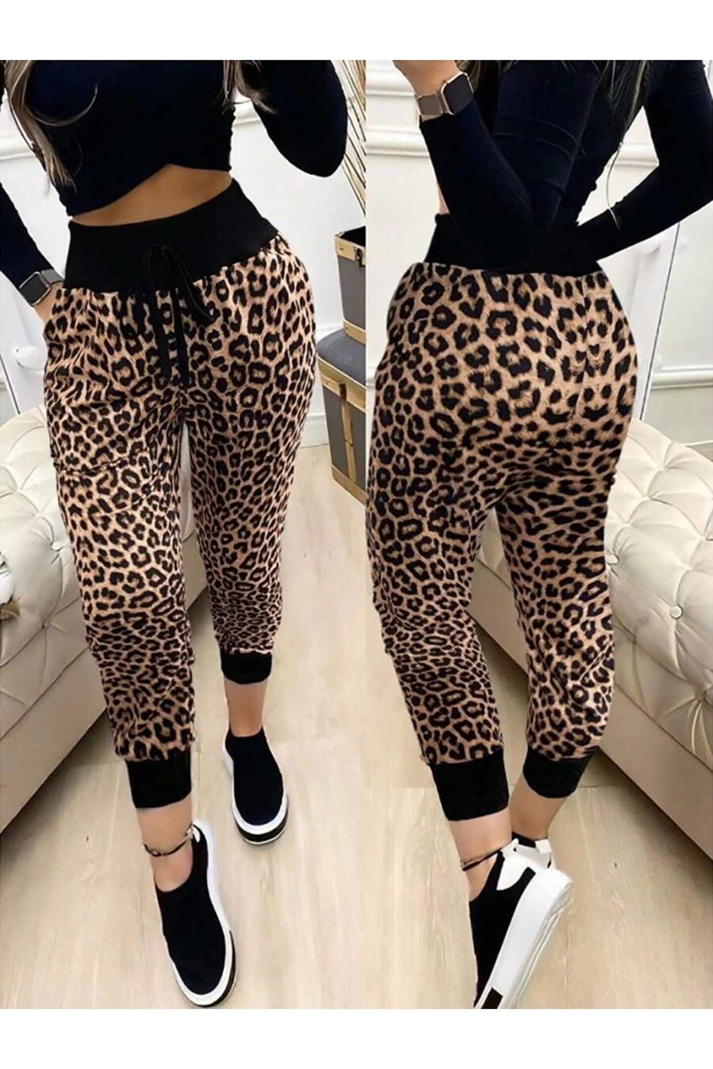 TBL DEKOR Kadın Yüksek Bel Bağcıklı Desenli Iki Iplik Pantolon