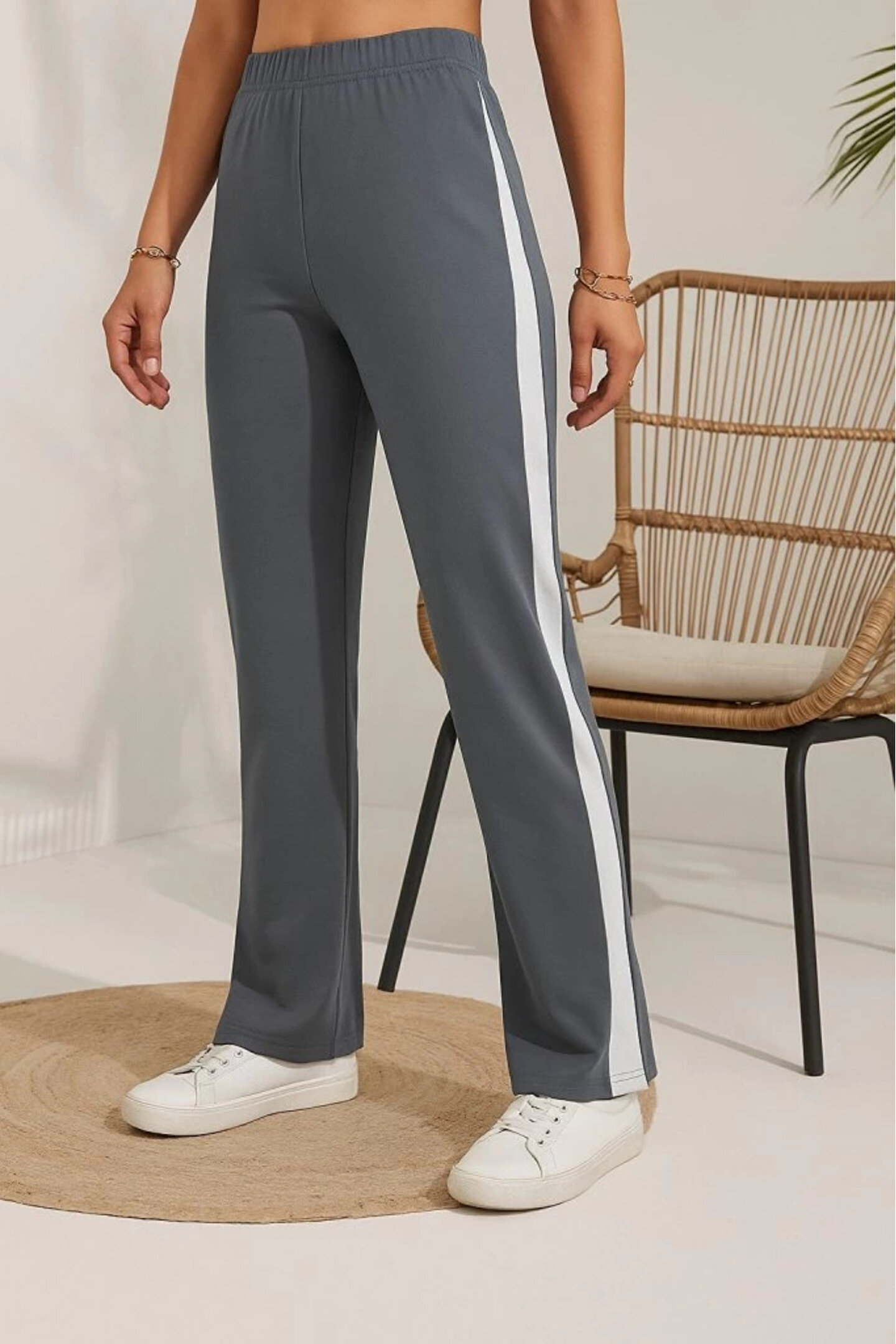Kadın Yüksek Bel Yan şerit Detaylı Yırtmaçlı Viskon Iki Iplik Pantolon