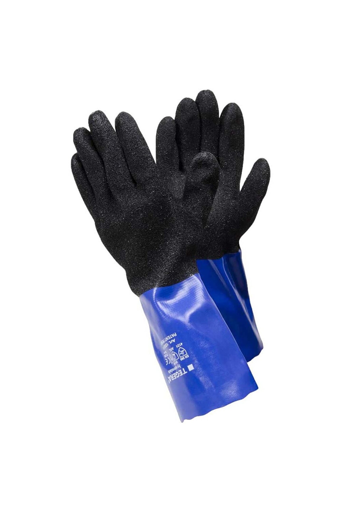 TEGERA İŞ ELDİVENİ 12935 ÖZELLİKLER Kimyasallara karşı koruma, ön kıvrımlı parmaklar BİRİNCİL KORUMA Şu riski önler:, riski, kirle temas, kimyasallarla temas, nemle temas, rutubetle temas, yağ ve gresle temas TEMEL KULLANIM ORTAMLARI Kimyasal risk taşıyan ortamlar, mikrobiyolojik risk taşıyan ortamlar, sağlığa zararlı ortamlar, aşındırıcı ortamlar, ıslak ortamlar, nemli ortamlar, yağ ve gresli ortamlar, kirli ortamlar, sert ortamlar TEMEL KULLANIM ALANLARI Bina ve inşaat, HVAC tesisatı, toprak hazırlama, beton işleri, ahşap sektörü işleri, orman işleri, tarım işleri, bahçecilik, denizcilik işleri, balıkçılık sektnörü işleri, petro kimyasal işler, kimyasal işler, kimyasal teknoloji işleri, kağıt sektörü işleri, arıtma, sağlık hizmetleri TEMEL KULLANIM ENDÜSTRİLERİ Agriculture, mining, oil, gas, petrochemical, pulp and paper, chemical, rubber and plastic, automotive, transportation İŞ TİPİ Yüksek seviye Eldiven Tipi : Tek kullanımlık ve/veya kimyasallara dirençli eldivenler Kategori : Cat; III Beden (AB) : 8, 9, 10, 11 Malzeme :; Astar Malzemesi : Dikişsiz, Naylon Daldırma Malzemesi : PVC (Vinil) Kalınlık :; İç :; El Becerisi : 5 Tutuş Deseni : Tanecikli Uzunluk Aralığı : 350 mm Renk : Mavi, siyah Karton Başına Kutu :; Kutu Başına Adet :; Paket/Karton Başına Çift : 12/60 AQL : 0; 65 Görüntü :; Malzeme Spesifikasyonu :; Dış Malzeme Spesifikasyonu : Polivinil klorür 100% İç Malzeme Spesifikasyonu : Naylon 100% Antibakteriyel / Biyosidal İşlemi : Pritiyon çinko (CAS numarası 13463; 41; 7) Modeli: Kimyasal Eldiven;;