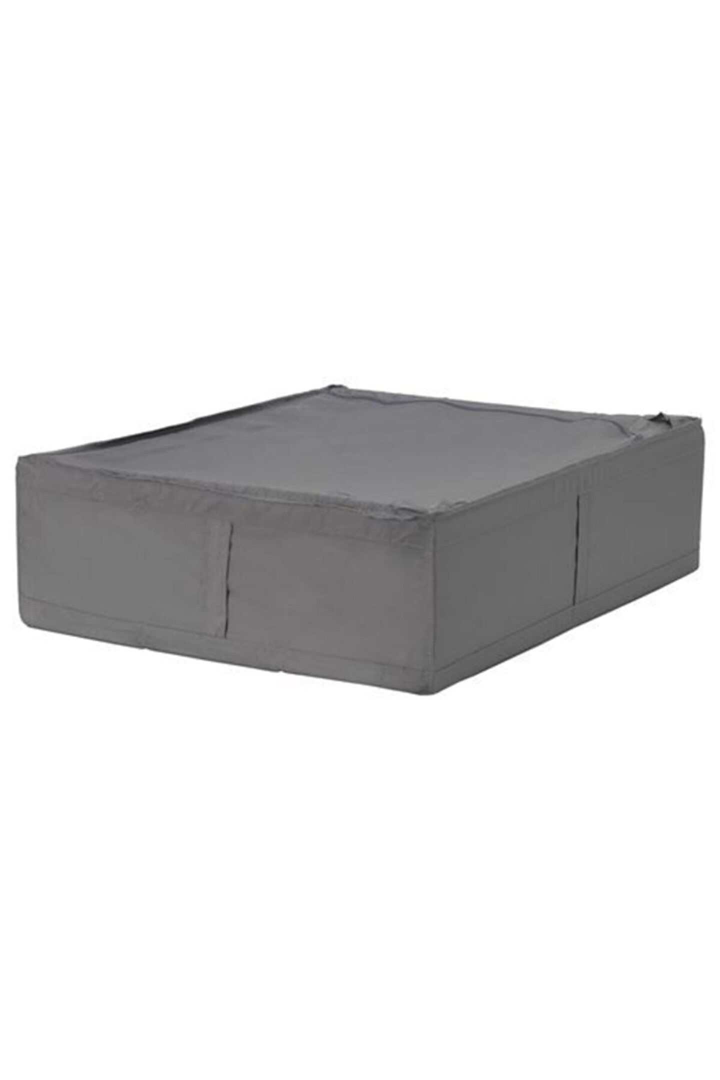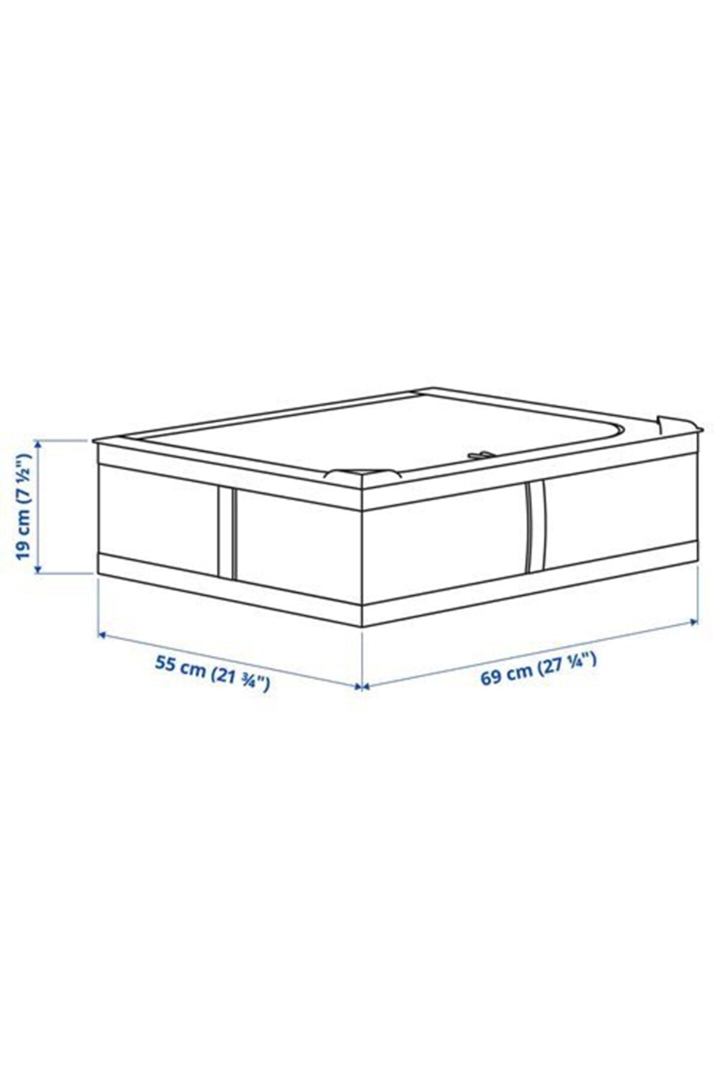 Ebatlar Genişlik: 69 cm Derinlik: 55 cm Yükseklik: 19 cm Kumaş geri dönüştürülmüş polyesterden yapılmıştır. ; Atığı kaynak olarak kullanmak bizi daha sürdürülebilir geleceğe bir adım daha yaklaştırıyor. ; Saklama kutusunu yatağın altına yerleştirerek yastıklar, nevresim ve yatak takımları için ekstra bir alan yaratabilirsiniz. ; Saklama kutusundaki kulp sayesinde kolayca çekilir. ; Malzeme Kumaş:%100 polyester Panel:Polipropilen plastik;