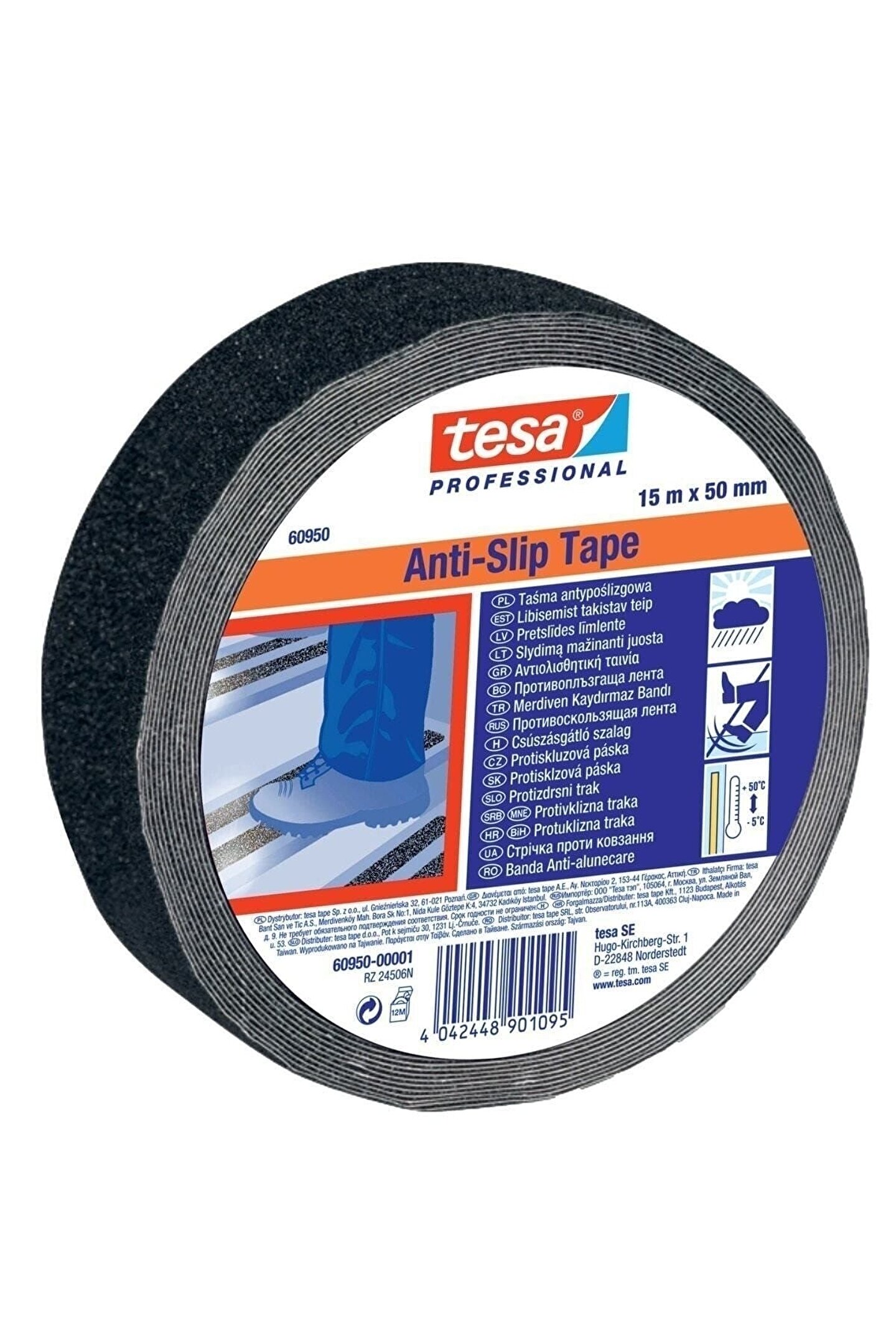 Tesa Merdiven Kaydırmaz Bant Siyah 50Mm X 15 Metre 60950 4042448901095 Kaydırmaz bantlar, kaygan, pürüzlü veya çok kademeli yüzeylerde oluşabilecek kaza riskini azaltır; Genel amaçlı bantlardan, özel uygulamalara yönelik alüminyum tabanlı bantlara kadar çok geniş yelpazede sunulan bu ürünler, kaydırmazlık özelliklerini uzun süre koruyabilmeleri amacıyla, yüksek kaliteli aşındırıcılar ve dayanıklı yapışkanlardan üretilmiştir;