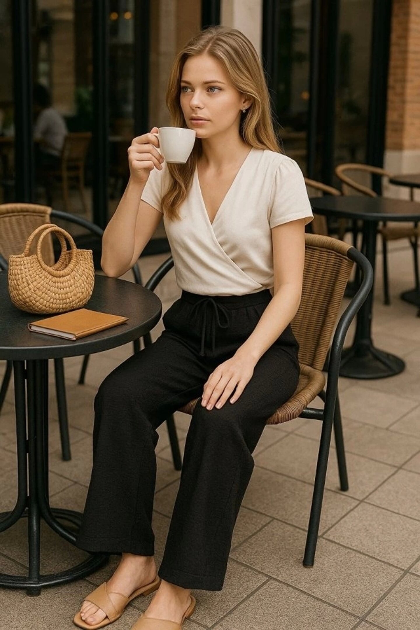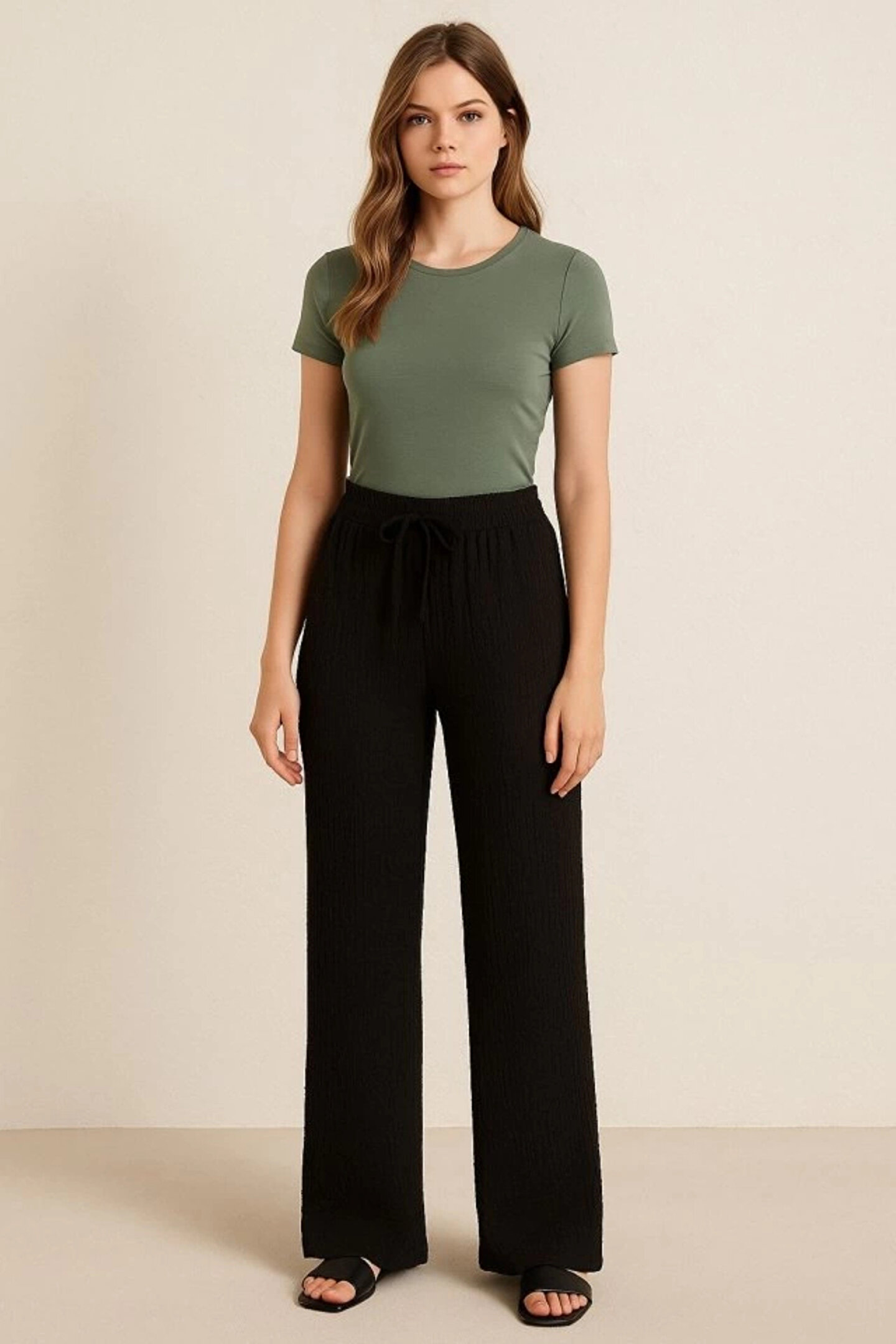 Tex Nova Kadın Beli Lastikli Pol Paça Pantolon