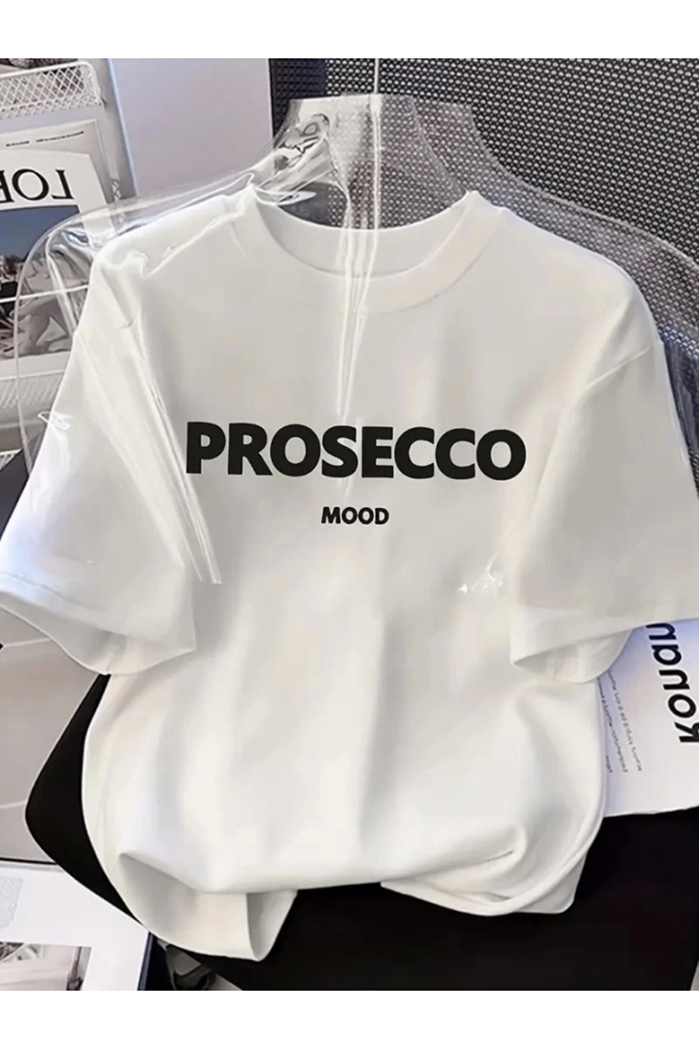 Baskılı Oversize Bisiklet Yaka T-shirt - Beyaz