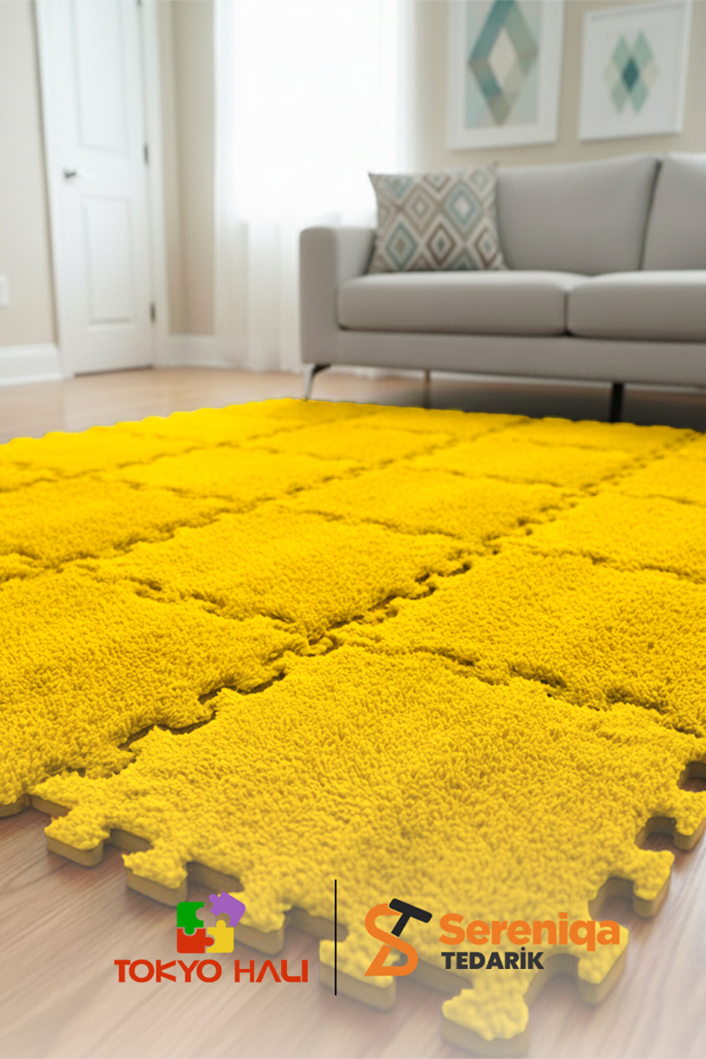 Tokyo Halı Sarı Peluş Puzzle Halı, Kendi Tasarımını Oluştur, Yapboz Halı, Peluş Halı