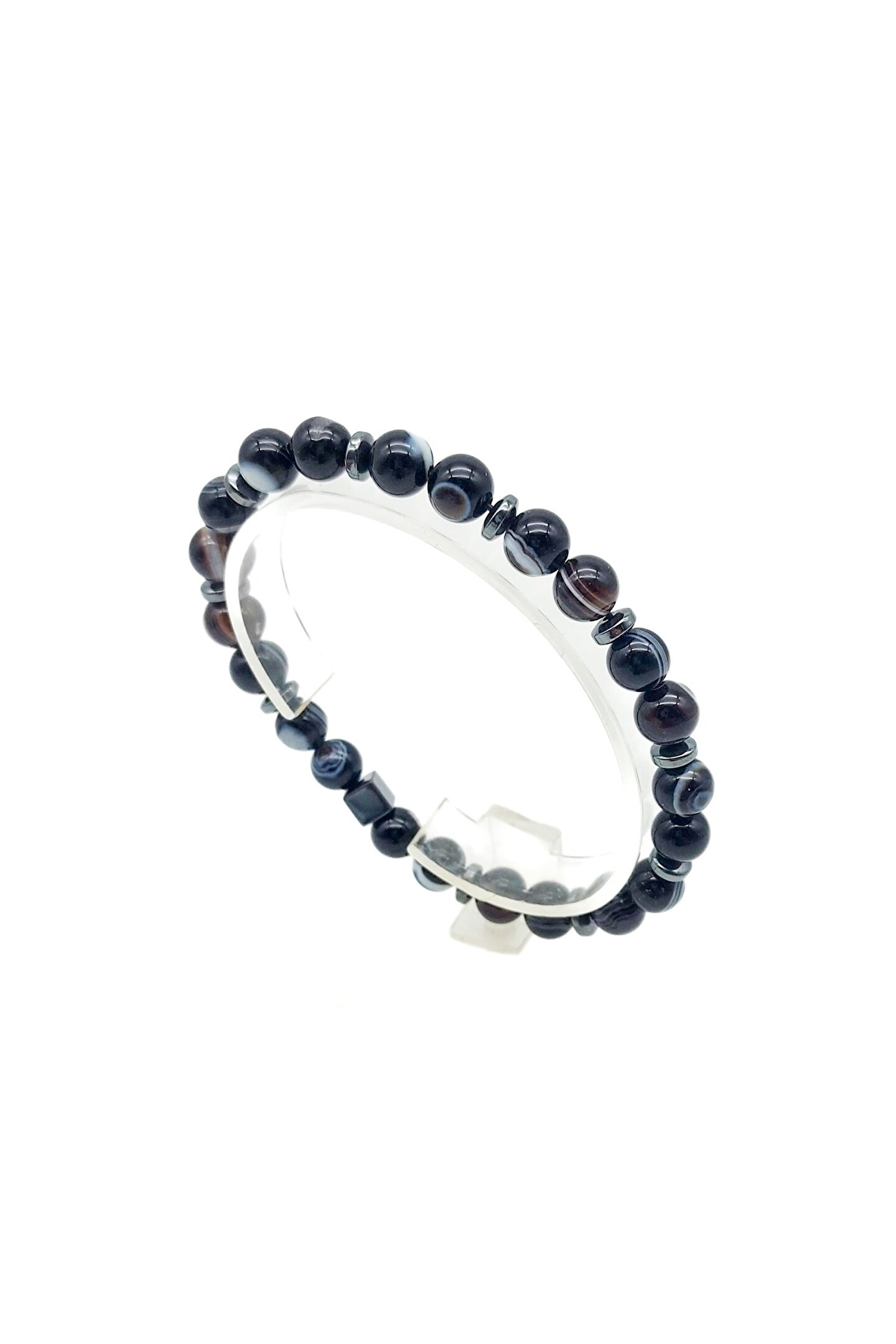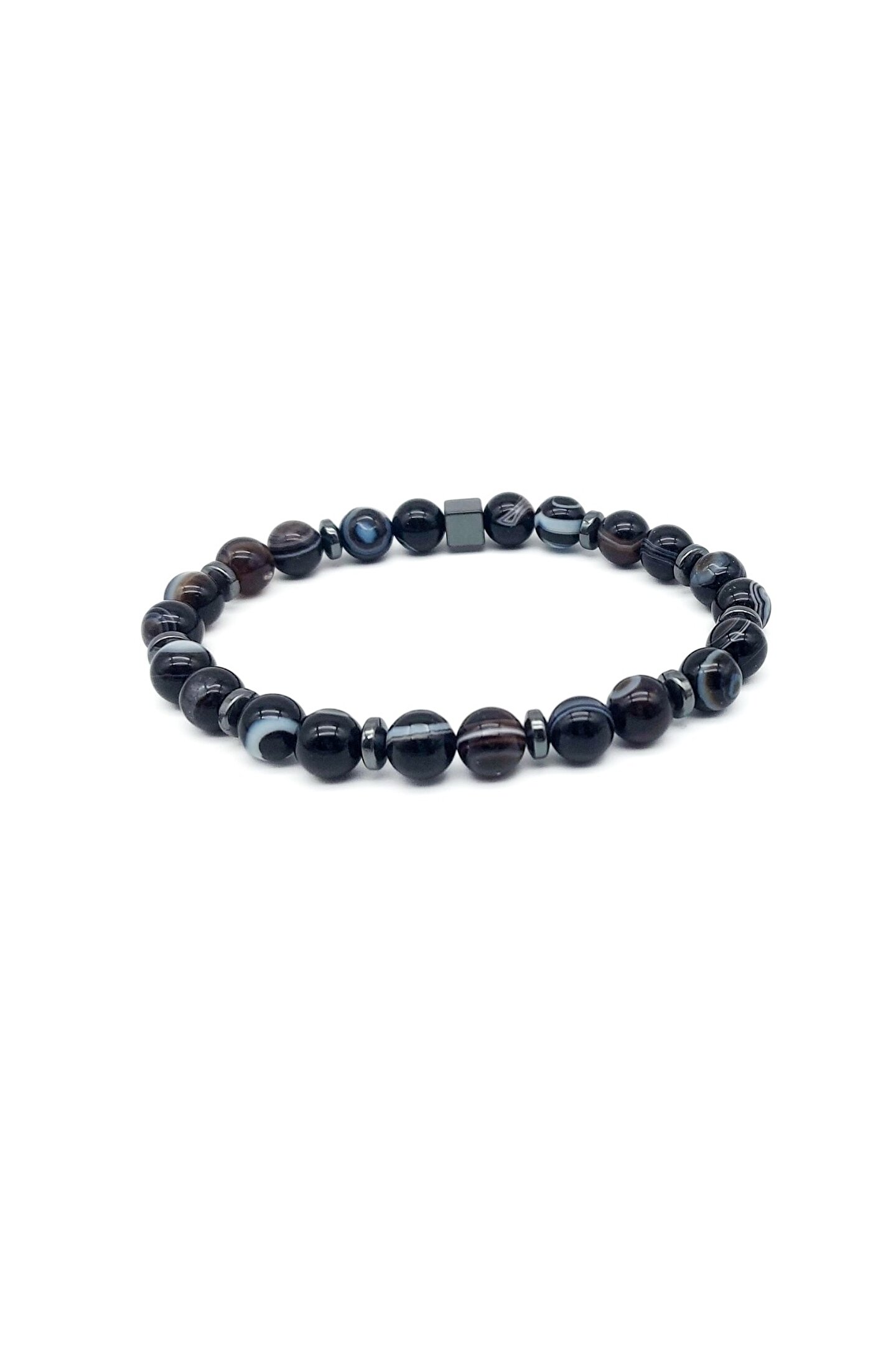 Göz Akik Bileklik ; Orijinal ve gerçek doğal taşlar, göz akik ve hematit kullanılmıştır.; ; Taş ölçüsü 8 mm dir.; ; Bileklikte, 0,8 mm dayanıklı misina lastik kullanılmıştır.; ; Ölçüler 16-18-20 cm dir ve uygun ölçü seçilmelidir.; ; Unisex modeldir.; Erkek, kadın ve ergen yaş için uygundur.; ; Göz Akik taşı : Bolluk, bereket, şans ve kısmet taşıdır.; Nazar engeller.; Akıl ve mantık gücünü açar.; Tembellik ve uykusuzluk için faydalıdır, sosyalleştirir.; Metabolizma hızlandırır, tansiyon, kan ve damar sistemine fayda eder.; Pankreas ve böbrek sağlığına etki eder.; Hematit taşı : Neşe, Canlık, Depresyon, Saç Dökülmesi, Kramplar, Eklem, Omurga ve Ağrıları.; Kullanım Bilgisi : Kullanım bilgisi ürün ile birlikte gönderilmektedir.; ; Bileklik, tene temas etmelidir.; ; İçme suyuna birkaç dakika tutulur veya kuru toprakta 30 dakika bekletilir.; Kurulanıp kullanılır.; Temizleme işlemi 30 günde bir tekrarlanır.; ; Şampuan, sabun, deterjan gibi kimyasal maddeler ile temas ettirilmemesi gerekir.; Banyoda ve havuzda çıkarılması önemlidir.; ; Başka kişilerce ( kardeşler arasında ) kullanılması önerilmez.; ; Geceleri çıkarılıp baş ucunda tutulması önerilir.;