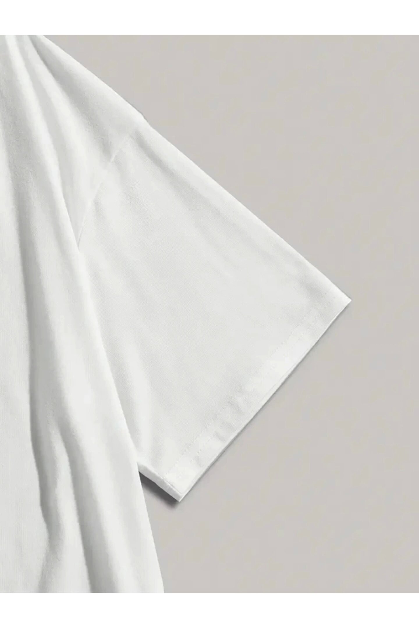 Baskılı Oversize Bisiklet Yaka T-shirt - Beyaz