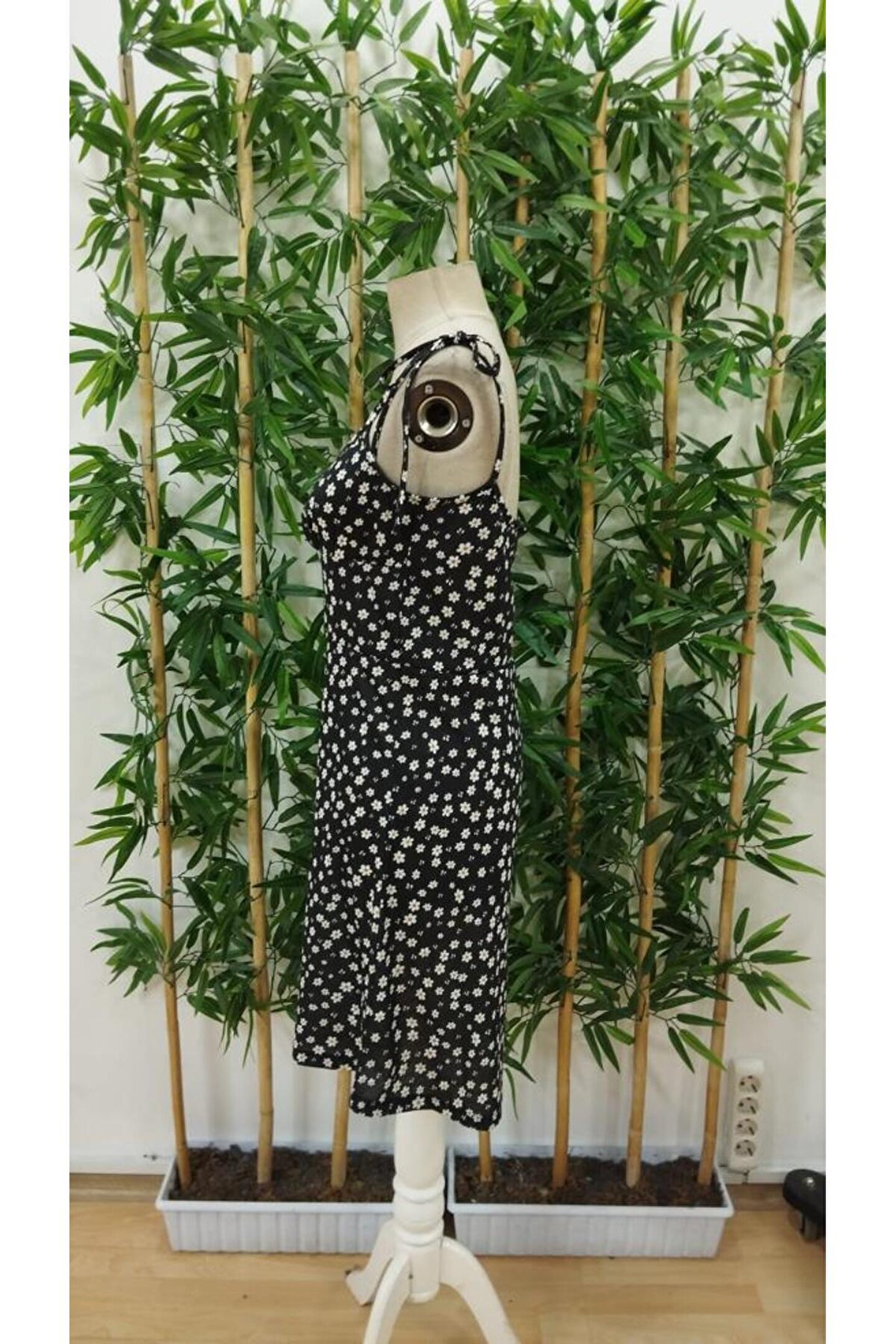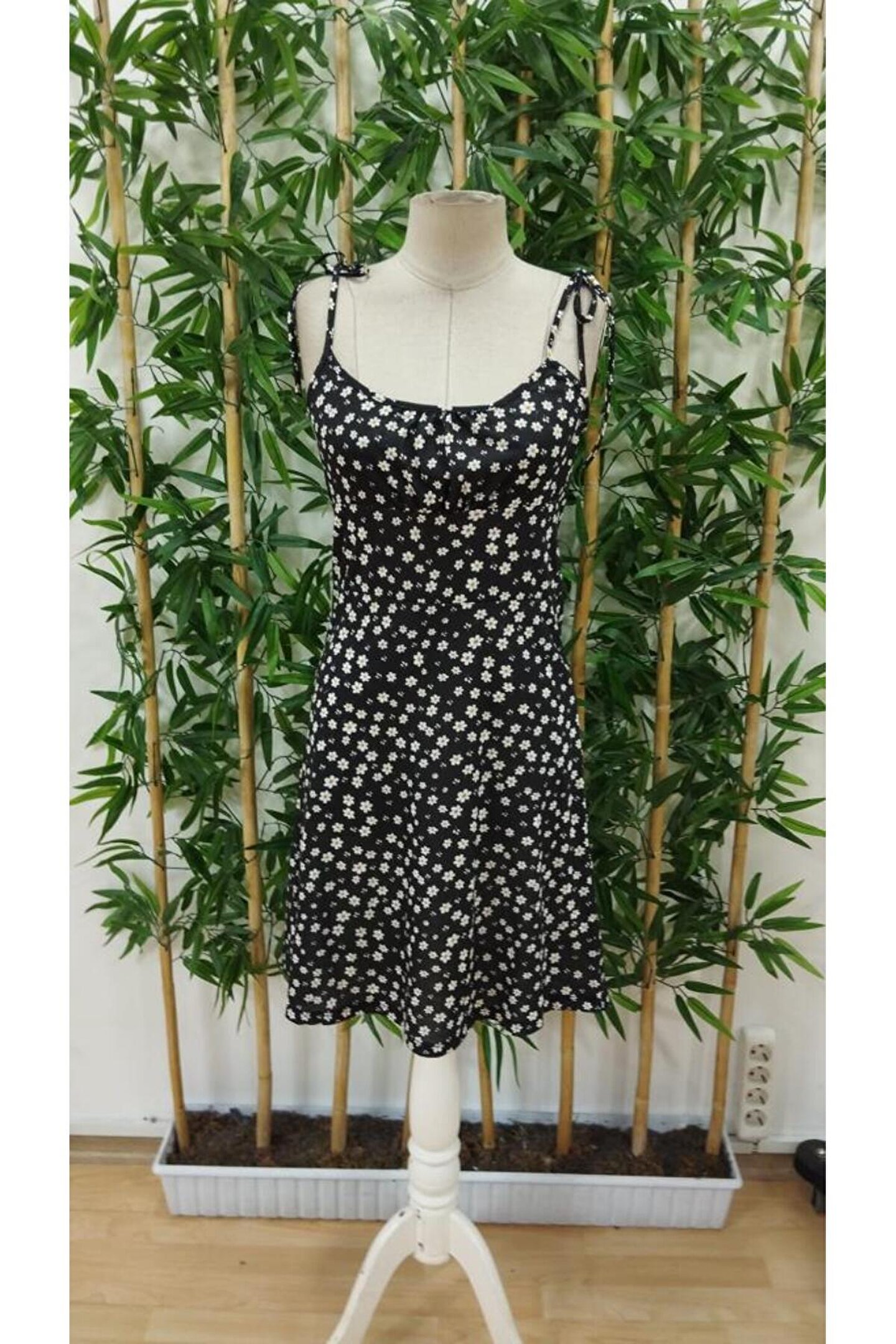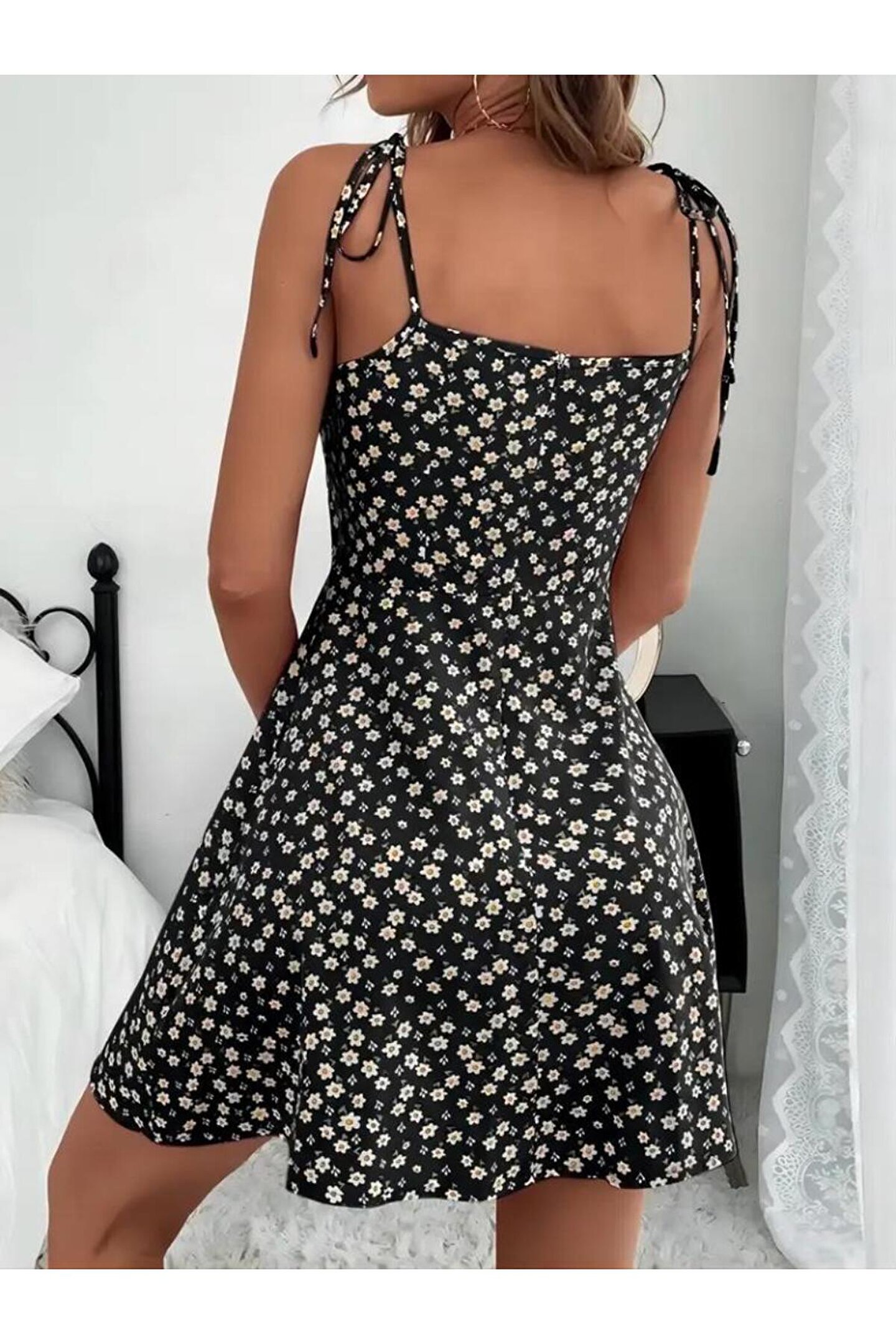 Kadın Ip Askılı Omuzlardan Bağcıklı çiçek Desenli Süprem Elbise