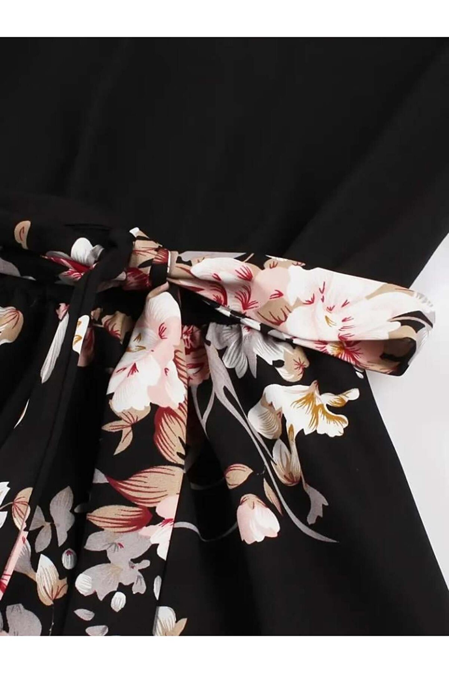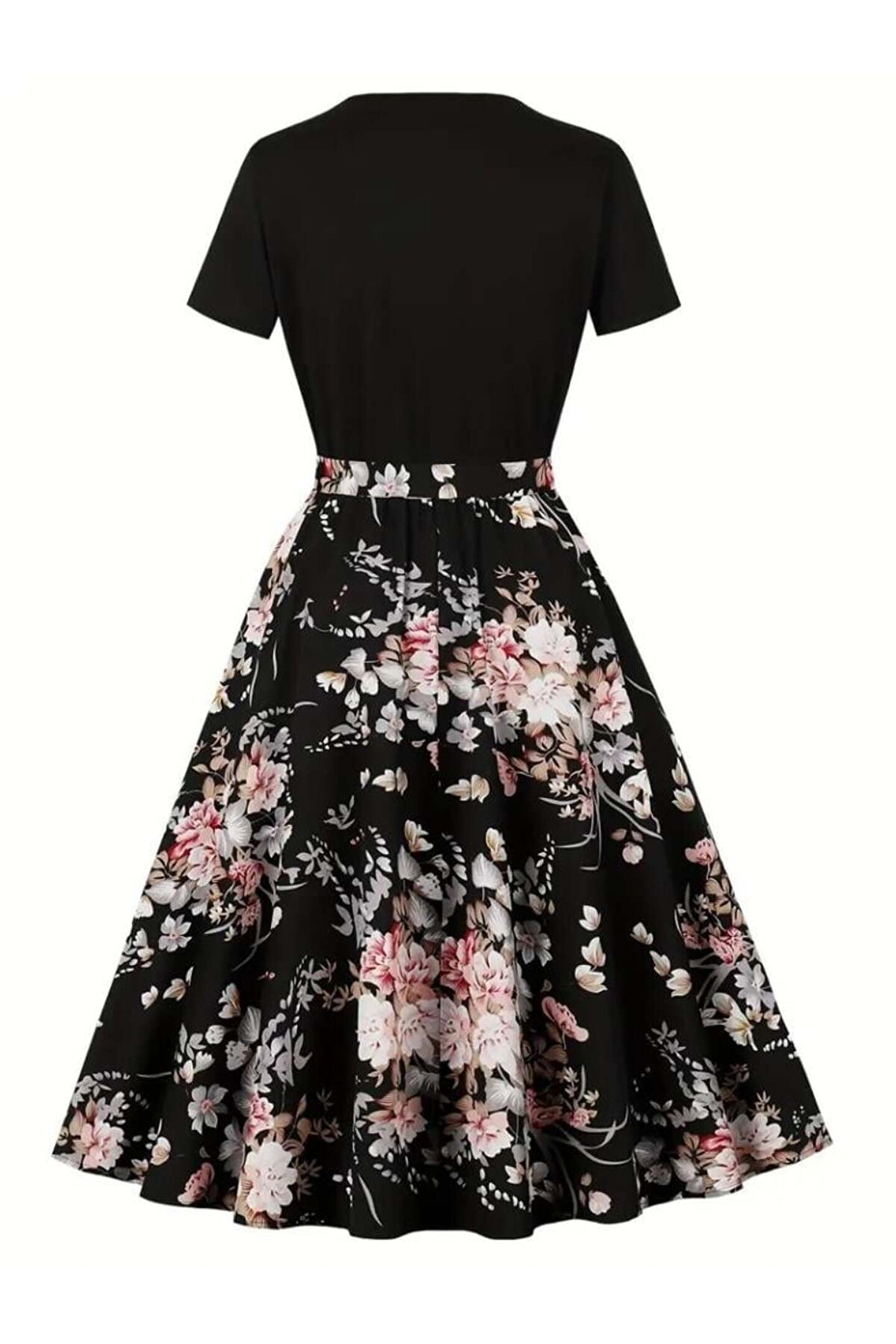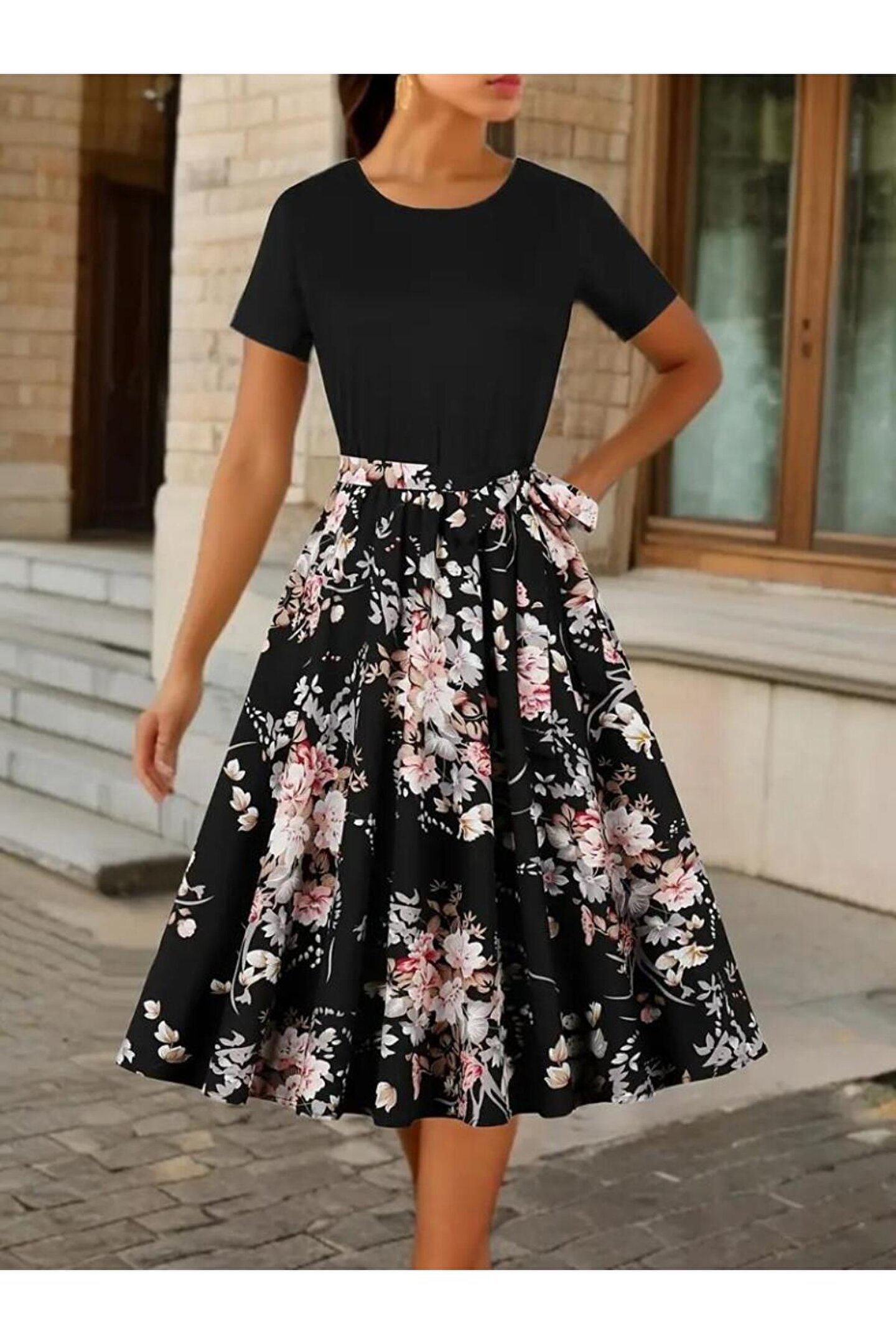 trend_ermege Kadın Kısa Kollu Bisiklet Yaka çiçek Desenli üst Viskon Alt Süprem Kısa Elbise
