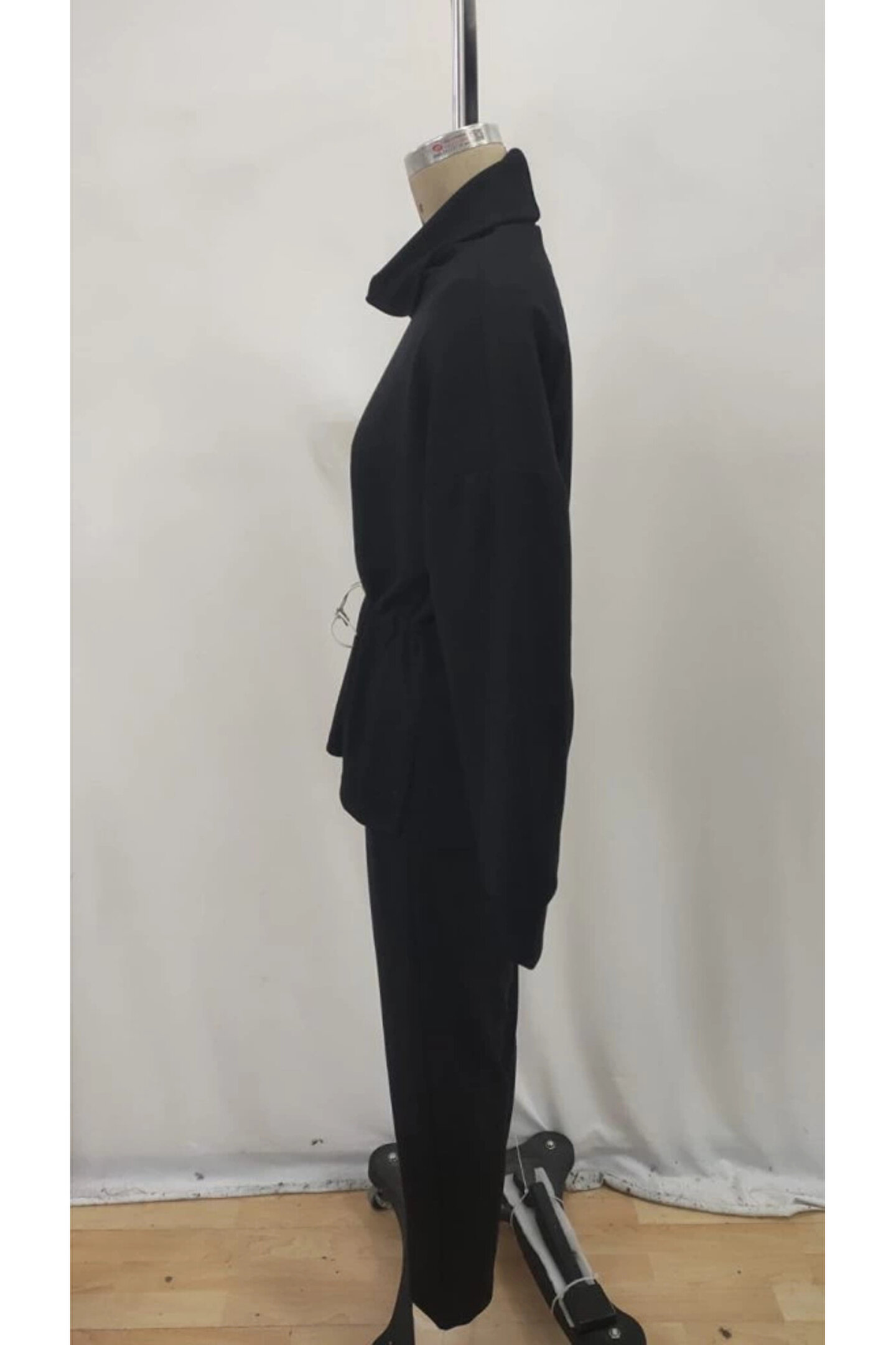 Kadın Uzun Kollu Balıkçı Yaka Belden Lastikli Modal Bluz Ve Pantolon Ikili Takım