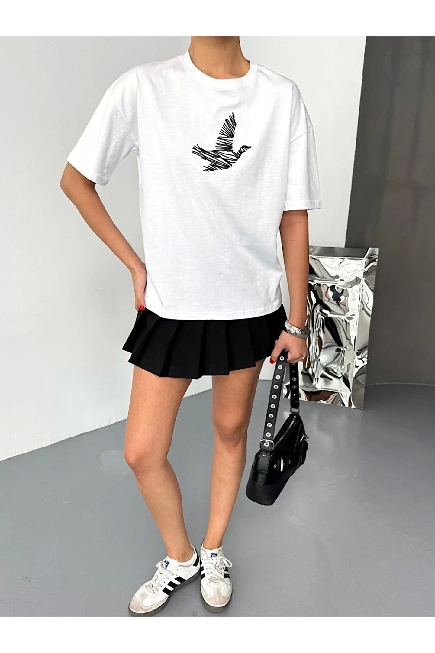 Kısa Kol Baskılı T-shirt - Beyaz
