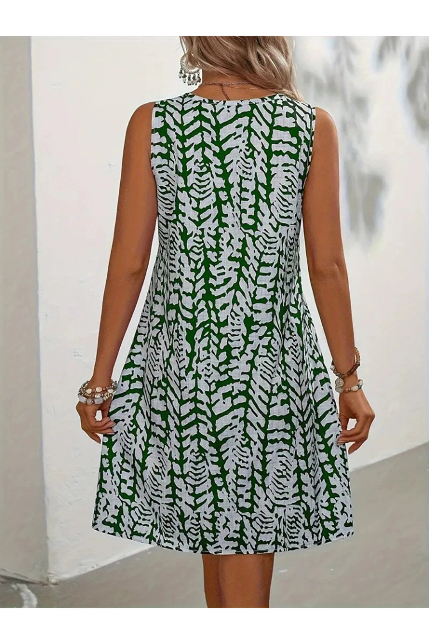 Kadın Sıfır Kol Yakadan Halka Detaylı Desenli Kısa Bürümcük Elbise