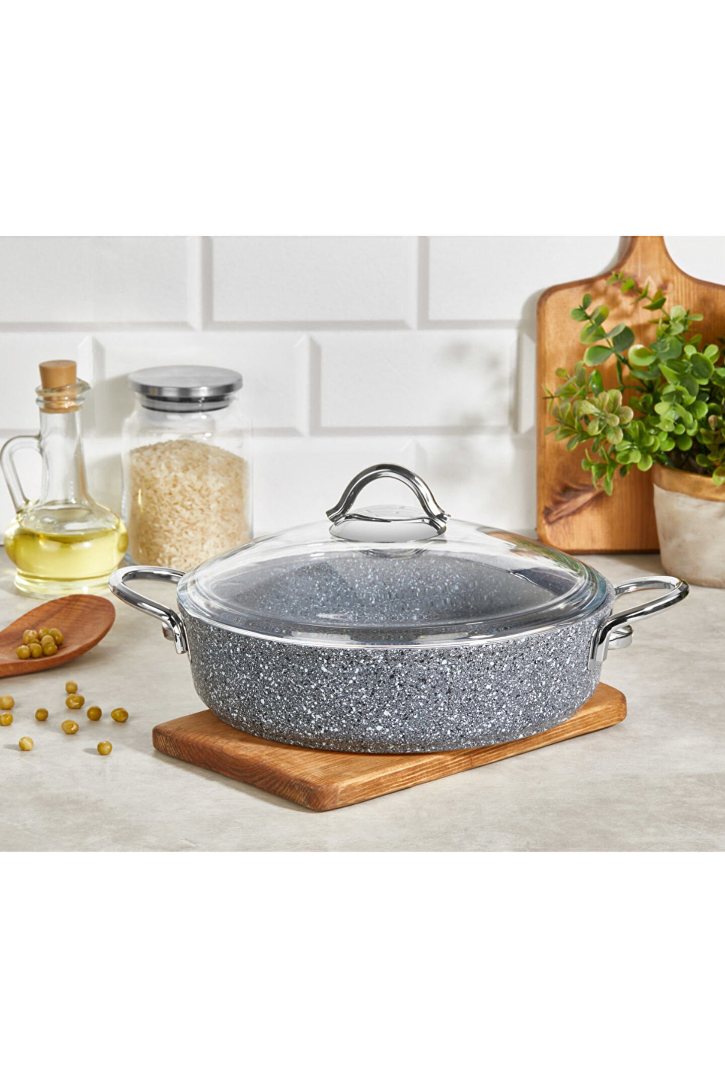 TRENDBULL Indüksiyon Uyumlu Basık Granit Tencere 30 Cm