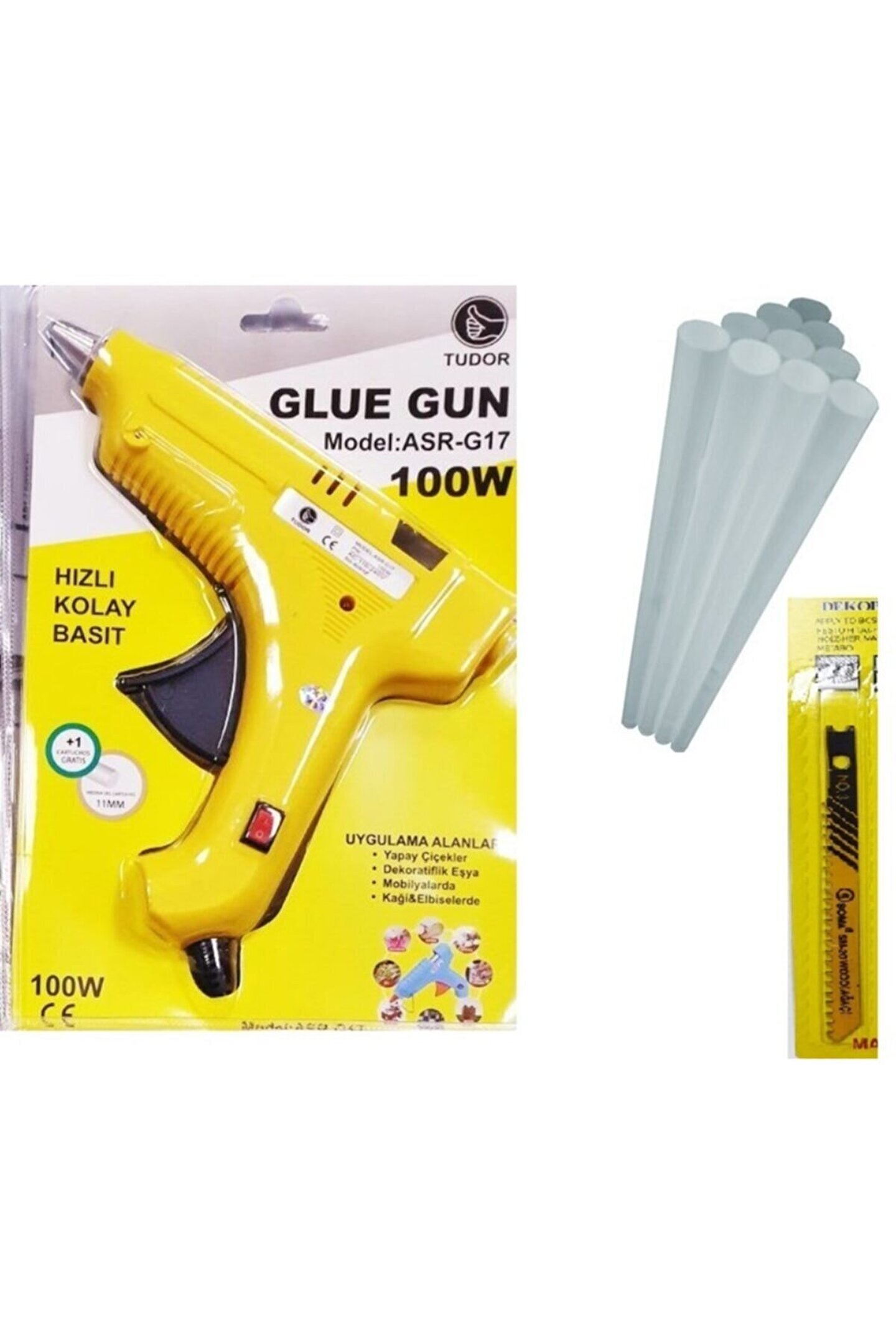 Makro yapı sıcak kalın mum silikon tabancası 100 watt anahtarlı sarı 10 mum ve soma uç