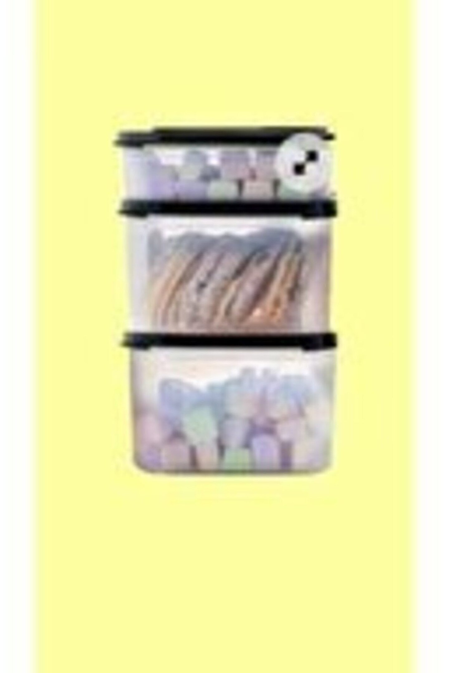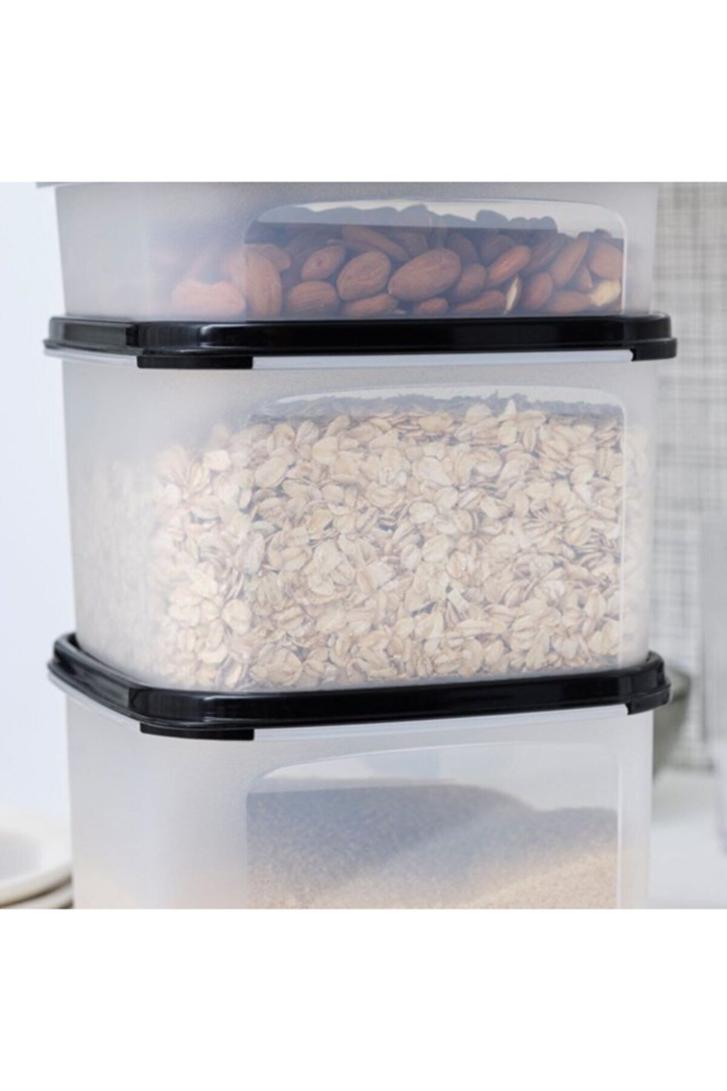 - 3 parçadan oluşan set, farklı kuru gıda türlerini düzenli bir şekilde saklamanızı sağlar.; - 4 litre hacmiyle geniş depolama alanı sunar, mutfakta yerden tasarruf etmenize yardımcı olur.; - Siyah renk seçeneğiyle modern ve şık bir görünüm kazandırır, mutfak dekorasyonunuza kolayca uyum sağlar.; - Tek ebat tasarımı sayesinde kolayca istiflenebilir ve saklama alanınızı optimize eder.; - Plastik materyali hafif ve dayanıklıdır, uzun süreli kullanım için idealdir.; - ABD menşeli ürün, kalite ve güvenilirlik standartlarına uygun olarak üretilmiştir.