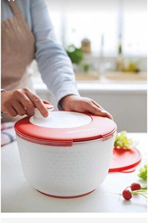 Tupperware Modern Sebze Kurutucusu 3.9l Modern Sebze Kurutucusu'nun kullanımı zahmetsizdir ve buzdolabınızda kompakt depolama sağlar. ; Hermetik ve su geçirmez esnek kapağı, sebzelerinizi saklamanıza ve taşımanıza olanak tanır. ; Modern Sebze Kurutucusu, kolay temizlik için kolayca demonte edilir. ; Yarı saydam kasesi ve cömert kapasitesi (3,9 litre) sayesinde salatanızı yıkamak artık bir angarya olmayacak. ; Çeviricinin kevgirindeki aralıkların sayısı ve boyutu, sebzelerin optimum döndürülmesi ve kurutulmasına izin verir ve marul vb yaprakların aralara kaçmasını önler. Modern Sebze Kurutucusu, kullanım sırasında iyi bir stabilite sağlamak için kaymaz bir disk üzerinde durmaktadır. ;