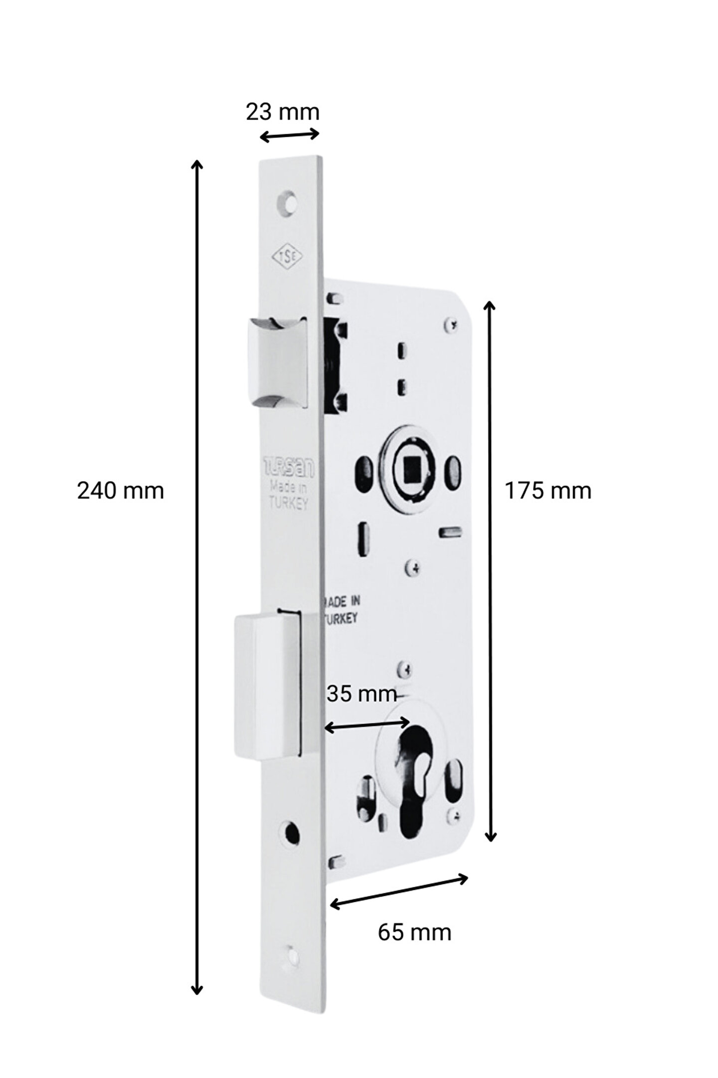 Tursan Nikel Düz Ayna Rulmanlı Oda Kilidi 35 mm