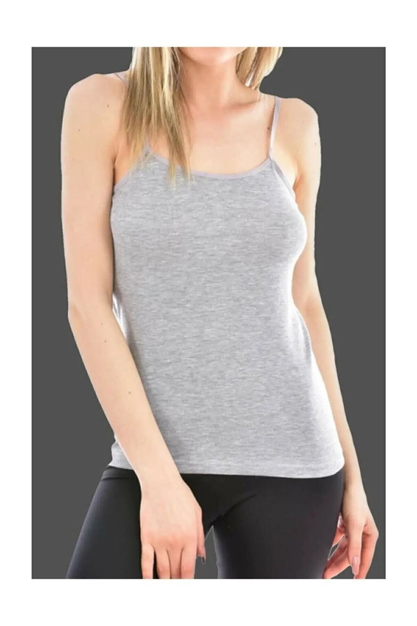 Kadın Gri 6'lı Paket Pamuklu Penye Ip Askılı Atlet Gri