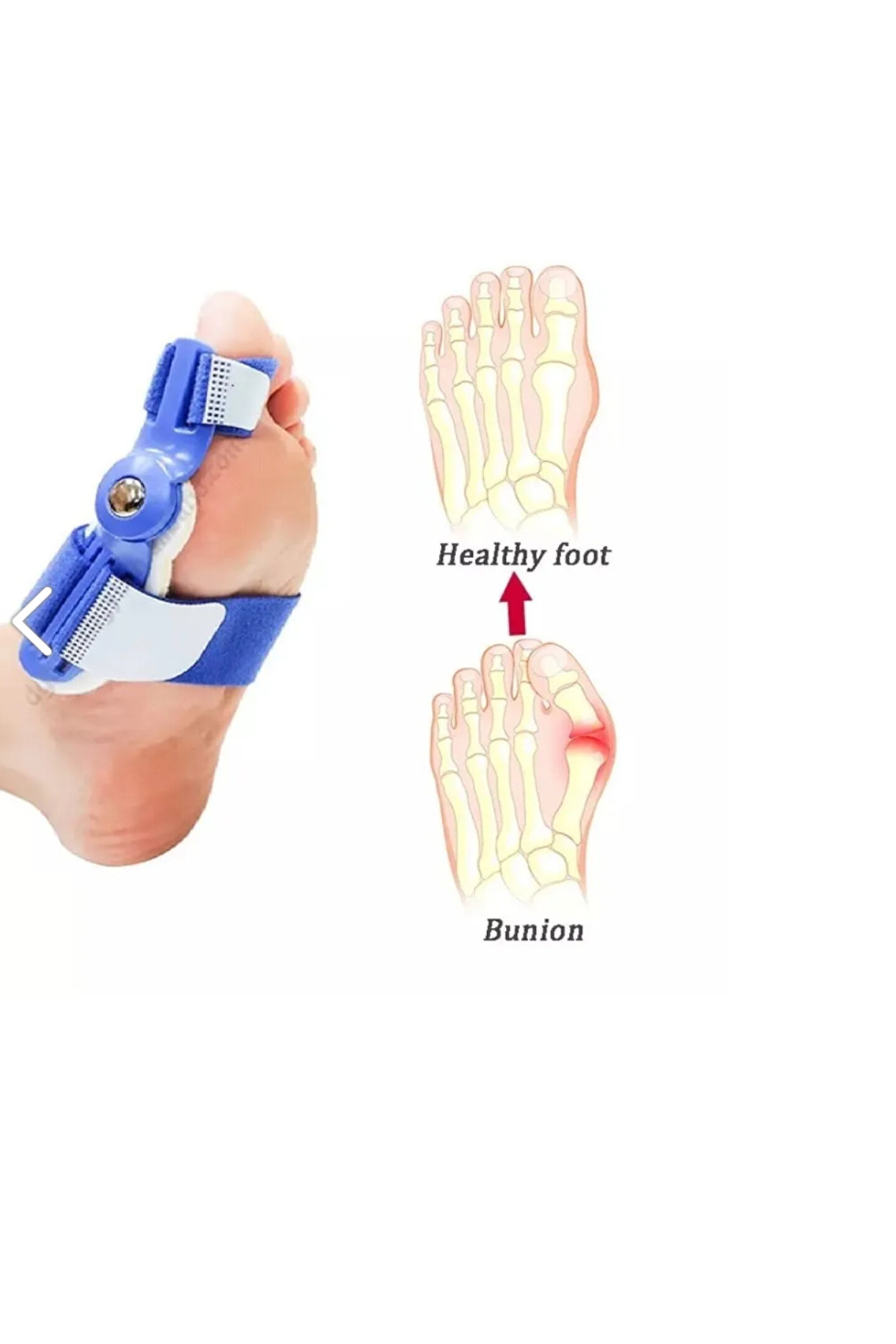 Baş parmak kemik düzeltici yürürken destekleyici rol üstlenen ve ayak baş parmağınızdaki kemiğin yapısını düzelterek düzgün durmasını sağlayan baş parmak kemik düzeltici gece aleti. ; Baş parmağınızın ve yanındaki parmağın arasındaki sürtünmeyi azaltarak rahatlamanızı sağlar. ; Kemik düzeltici özellikleri yumuşak yapısı ile ayağınızı rahatsız etmez. ; Kullanırken ayak parmaklarınızı kolay bir şekilde bükebilirsiniz. ; Hallux valgus rahatsızlığında kullanılır. ; Ürün bedensiz olup her yaşa uygundur. ; Paket içerisinde 1 adet ürün bulunmaktadır. ; Sağ ve sol ayak uyumludur. ; Elde ılık suda yıkayabilirsiniz. ; Çamaşır suyu ve türevleri kullanmayınız.;