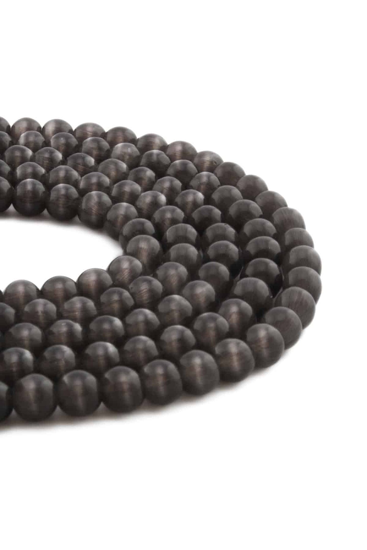 Uçar Doğaltaş Kedi Gözü Doğal Taş Parlak Siyah Küre Kesim 8mm Dizi [AB+]