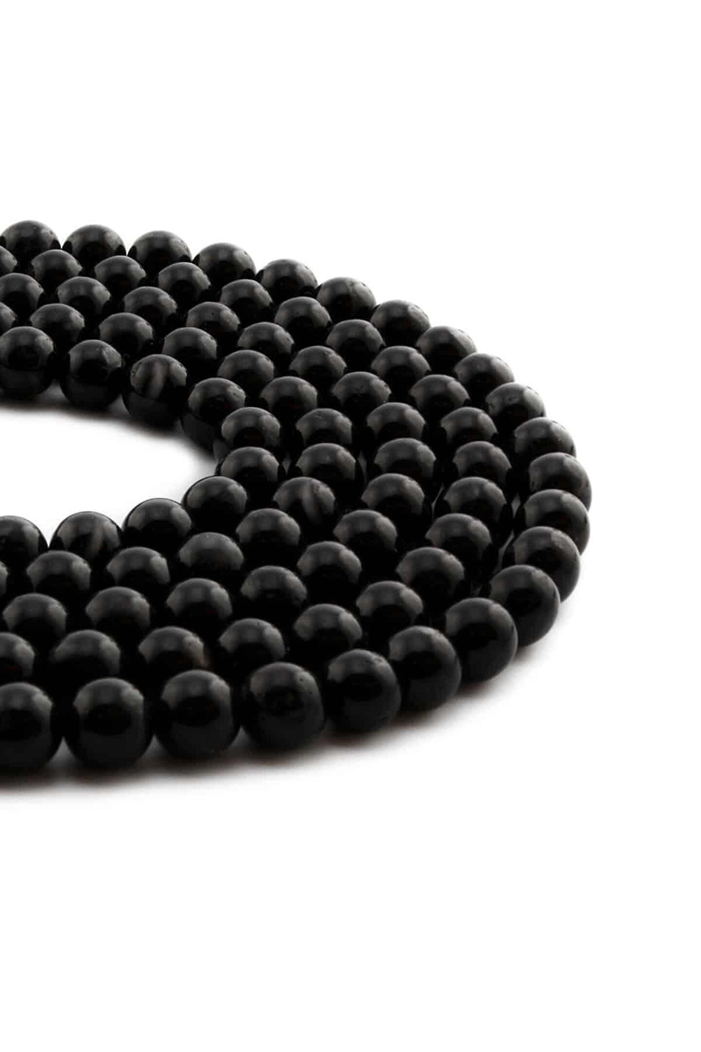 Uçar Doğaltaş Turmalin Doğal Taş Parlak Siyah Küre Kesim 8mm Dizi [AB+]
