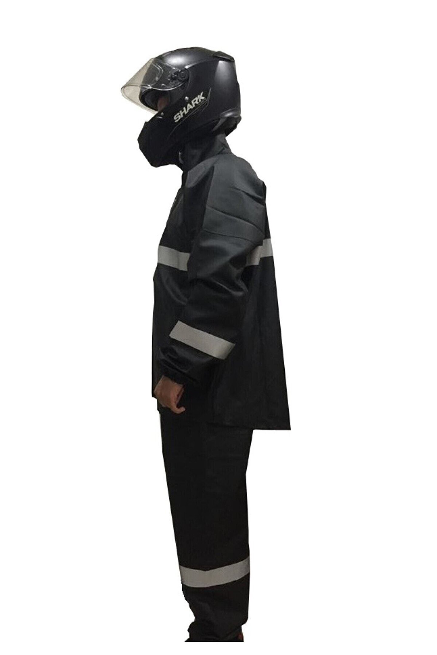 %100 su geçirmez garantili .2 parça olarak takımdır. Pantolon beli ve paçası lastiklidir .Göğüs ve Kolda 2.5 cm reflektör . Kol gizli lastik . Yağmurluk kapşonsuz , fermuarlı ve çıtçıt patlıdır . ürün kumaşı PVC olup ; 50 ~ 55 micron kalınlığında 600~650 gr metretül ağırlığındadır . Yağmurluk frekans yapıştırmalıdır