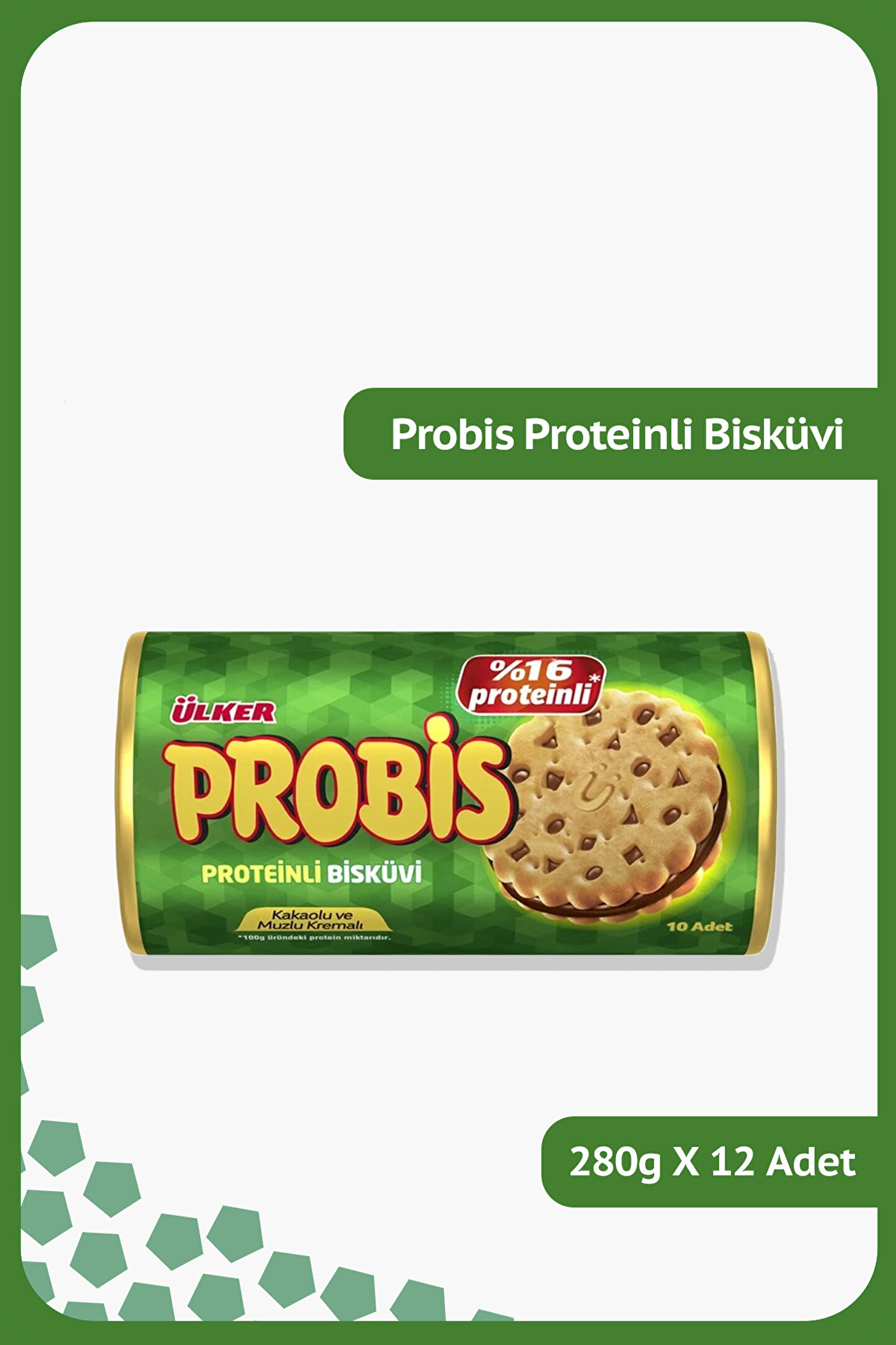 Ülker PROBİS Proteinli Bisküvi - Kakaolu ve Muzlu Kremalı - 280 gram - 12 Adet