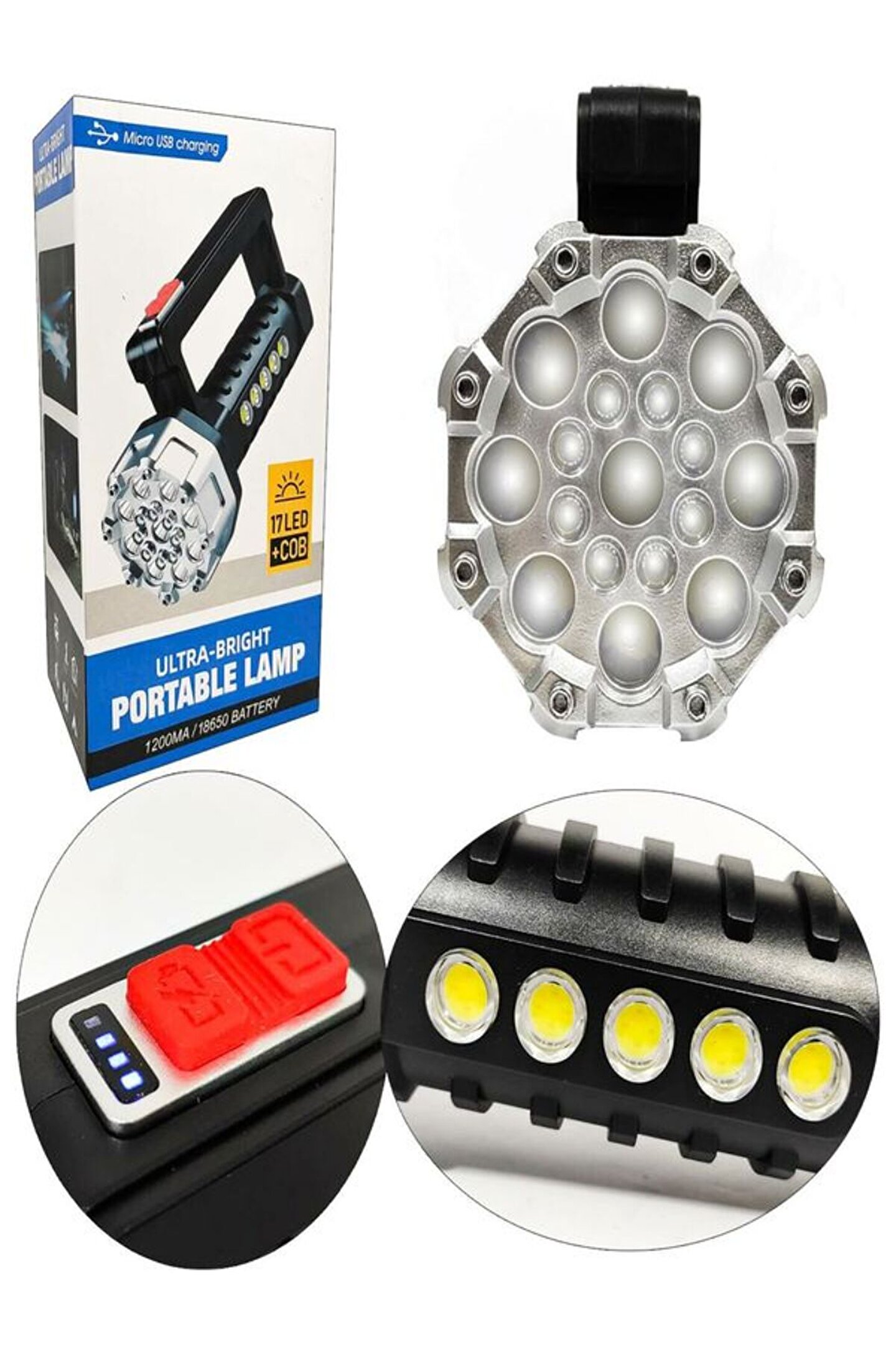 - Uzun süreli kullanım için ideal, şarj edilebilir yapısı sayesinde kablo karmaşasına son; - 17 LED ile donatılmış, yüksek parlaklıkta ve geniş aydınlatma alanı sunar; - Ultra güçlü aydınlatma kapasitesi ile zorlu arazi koşullarında bile etkili bir şekilde aydınlatma sağlar; - Su geçirmez özelliği sayesinde yağmur, kar gibi dış etkenlere karşı dayanıklılık gösterir; - Şarj göstergesi ile pil durumunu kolayca takip edebilir, böylece enerji tasarrufu yapabilirsiniz; - Profesyonel kullanım için tasarlanmış olup, uzun ömürlü ve dayanıklı yapısıyla dikkat çeker;
